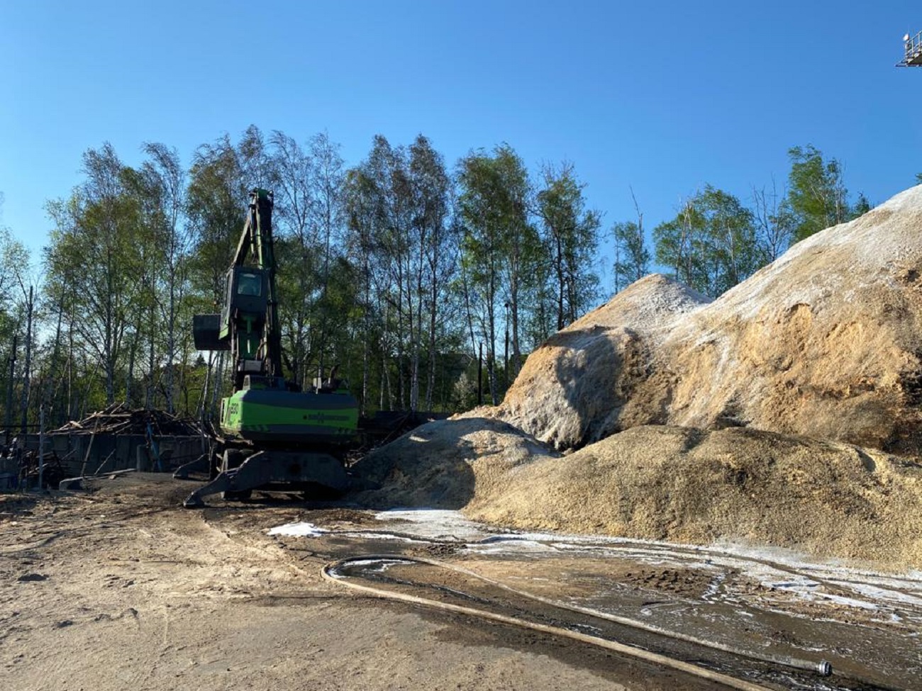 Stanowisko Kierowania przyjęło zgłoszenie z informacją o pożarze składowiska trocin.