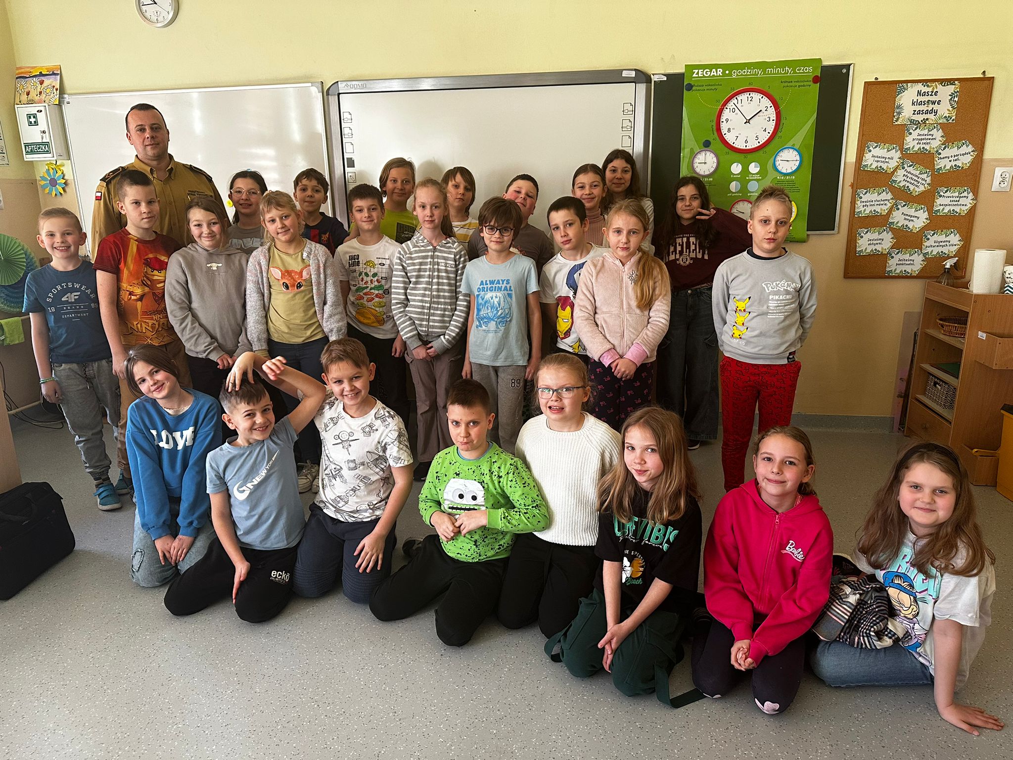 Ważnym elementem spotkania była również rozmowa o zawodzie strażaka oraz o zasadach postępowania w sytuacjach kryzysowych. Przypomniano numery alarmowe i wyjaśniono, kiedy i w jaki sposób należy z nich korzystać.