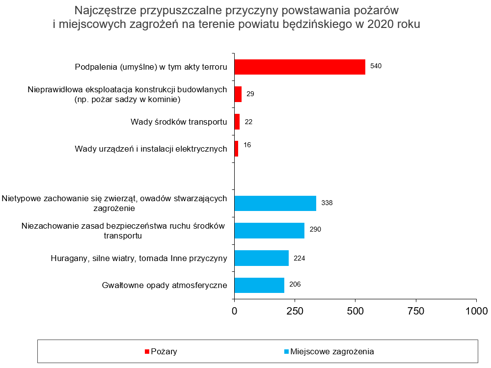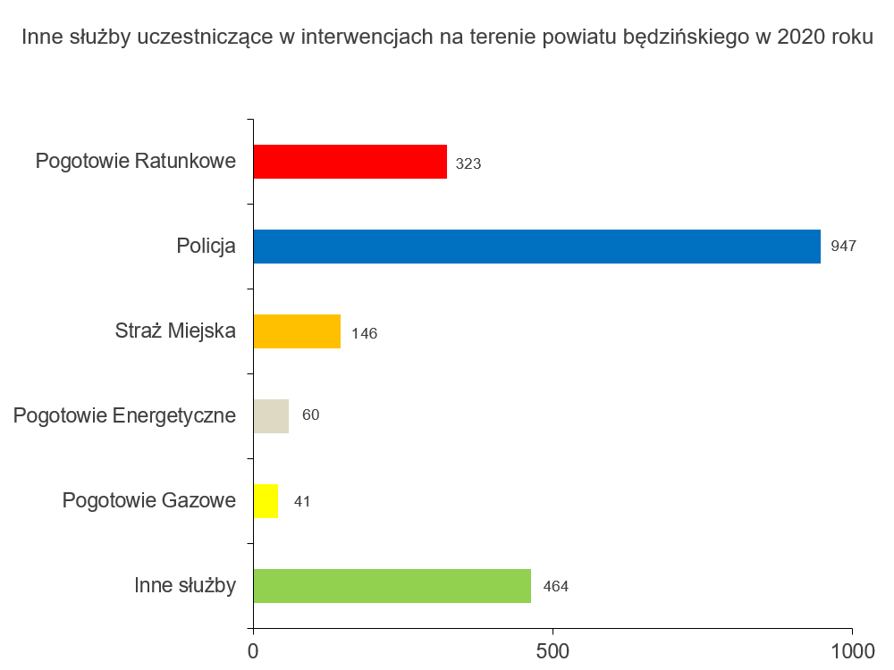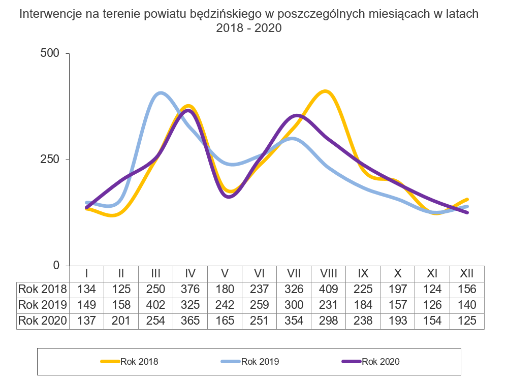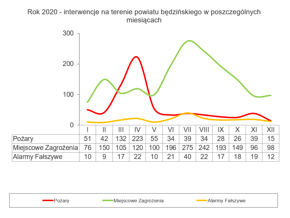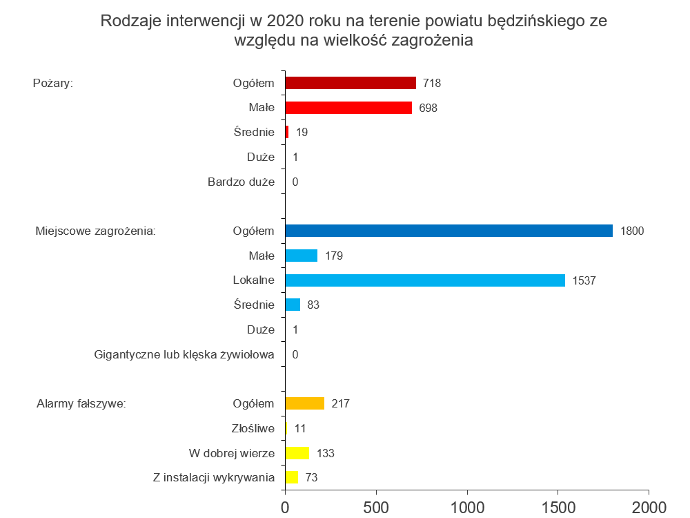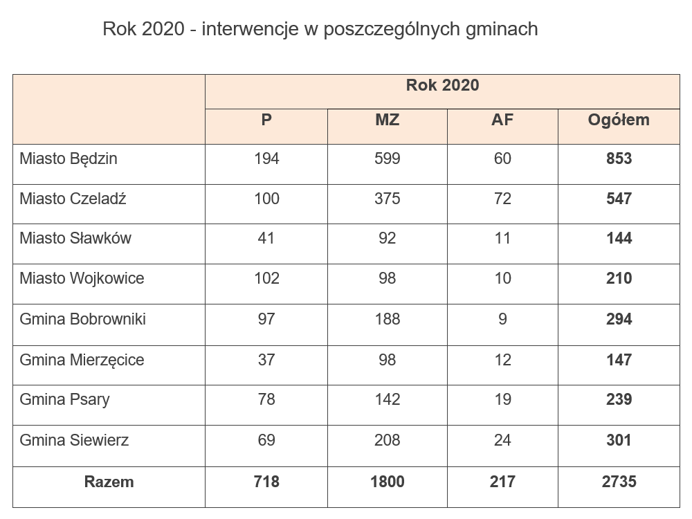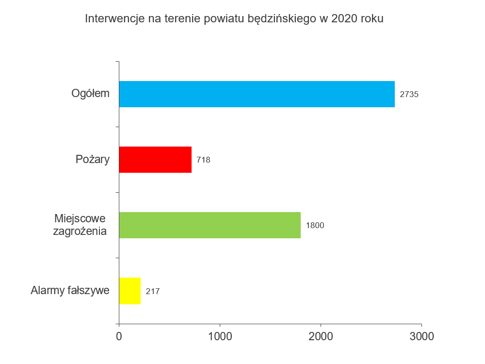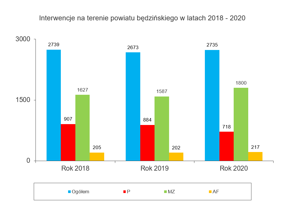 W 2020 roku na terenie powiatu będzińskiego odnotowano 2735 interwencji z których: