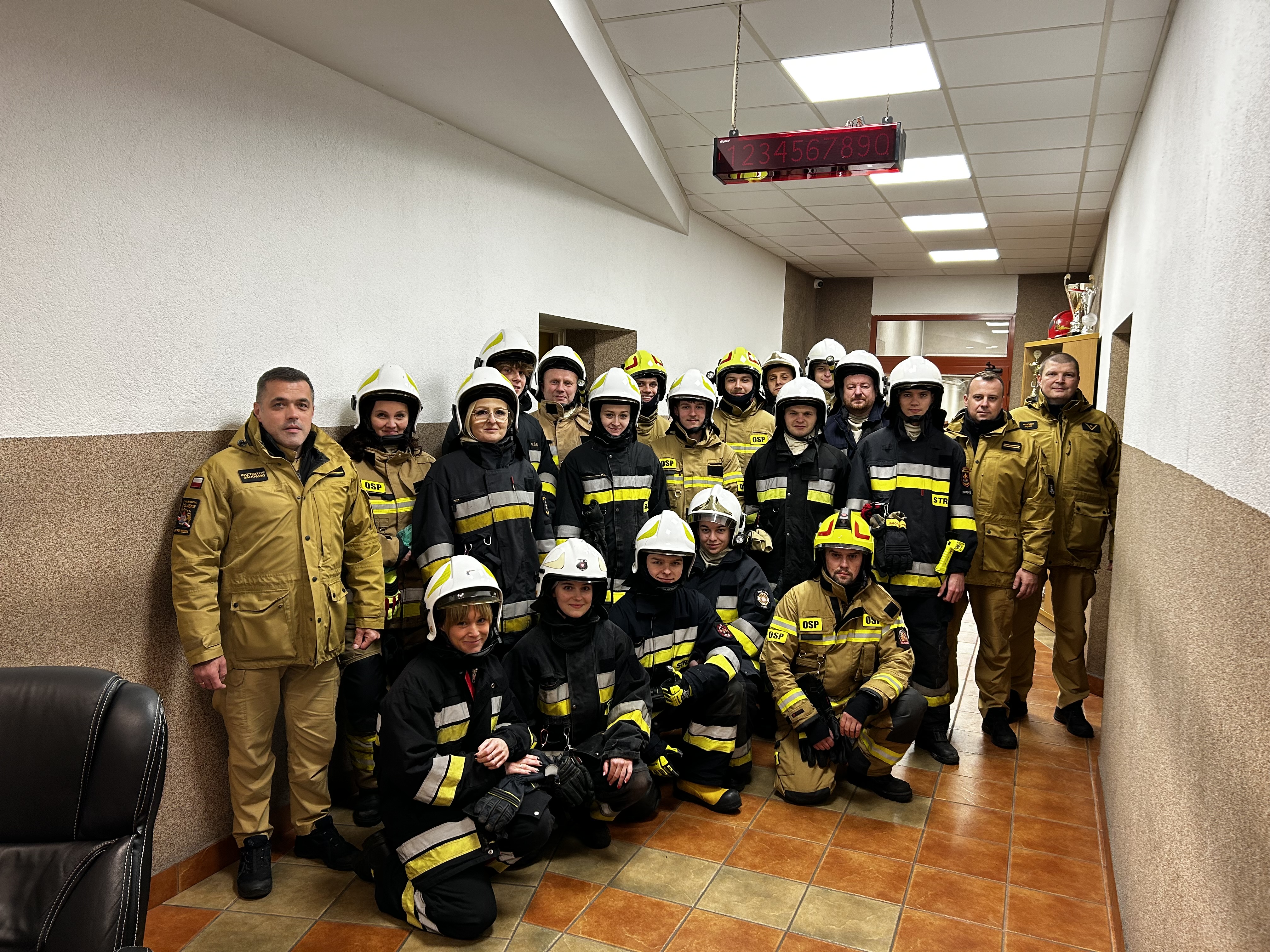W dniach 8 września – 14 listopada br. w Komendzie Powiatowej PSP w Będzinie realizowane były zajęcia w ramach Szkolenia Podstawowego Strażaka Ratownika Ochotniczych Straży Pożarnych. Podczas zajęć druhowie przyswajali wiedzę w zakresie taktyki działań ratowniczych, gaśniczych i wyposażenia sprzętowego umożliwiającego realizację tych zagadnień. Dodatkowo słuchacze zaliczyli test w komorze dymowej w Bielsku – Białej oraz odbyli szkolenie z zakresu współdziałania z Lotniczym Pogotowiem Ratunkowym.
