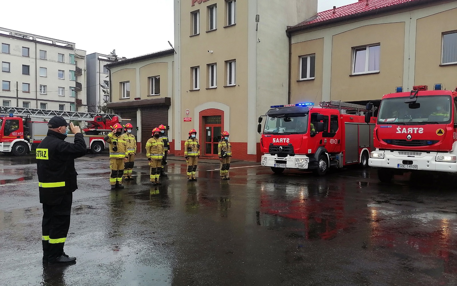 Dzisiaj o godzinie 12:00 strażacy Komendy Powiatowej PSP w Będzinie uczcili pamięć mł. asp. Michała Kędzierskiego, funkcjonariusza Policji poległego na służbie. Policjant z Raciborza zginął zastrzelony przez bandytę w czasie interwencji w dniu 4 maja 2021 roku.
