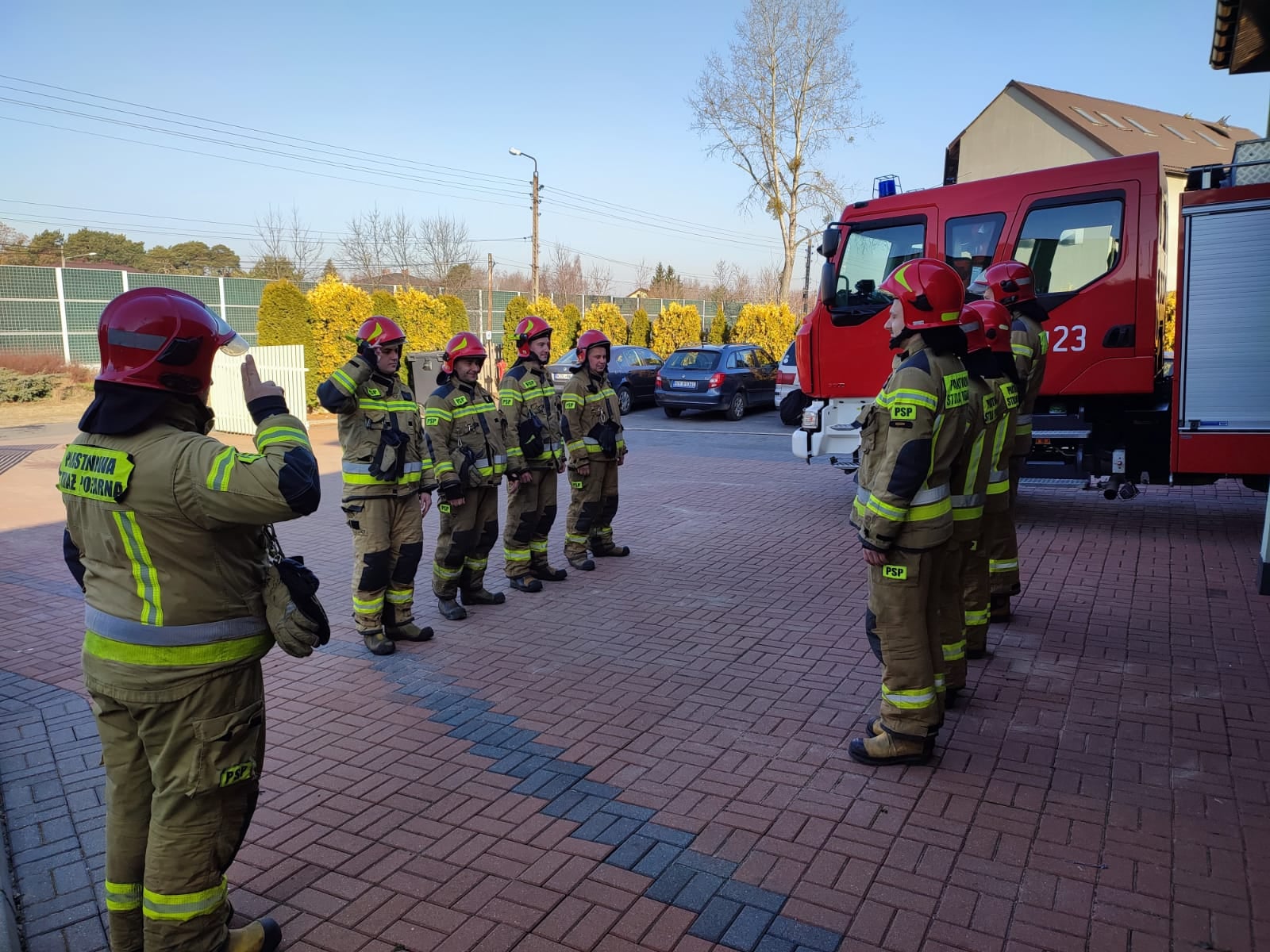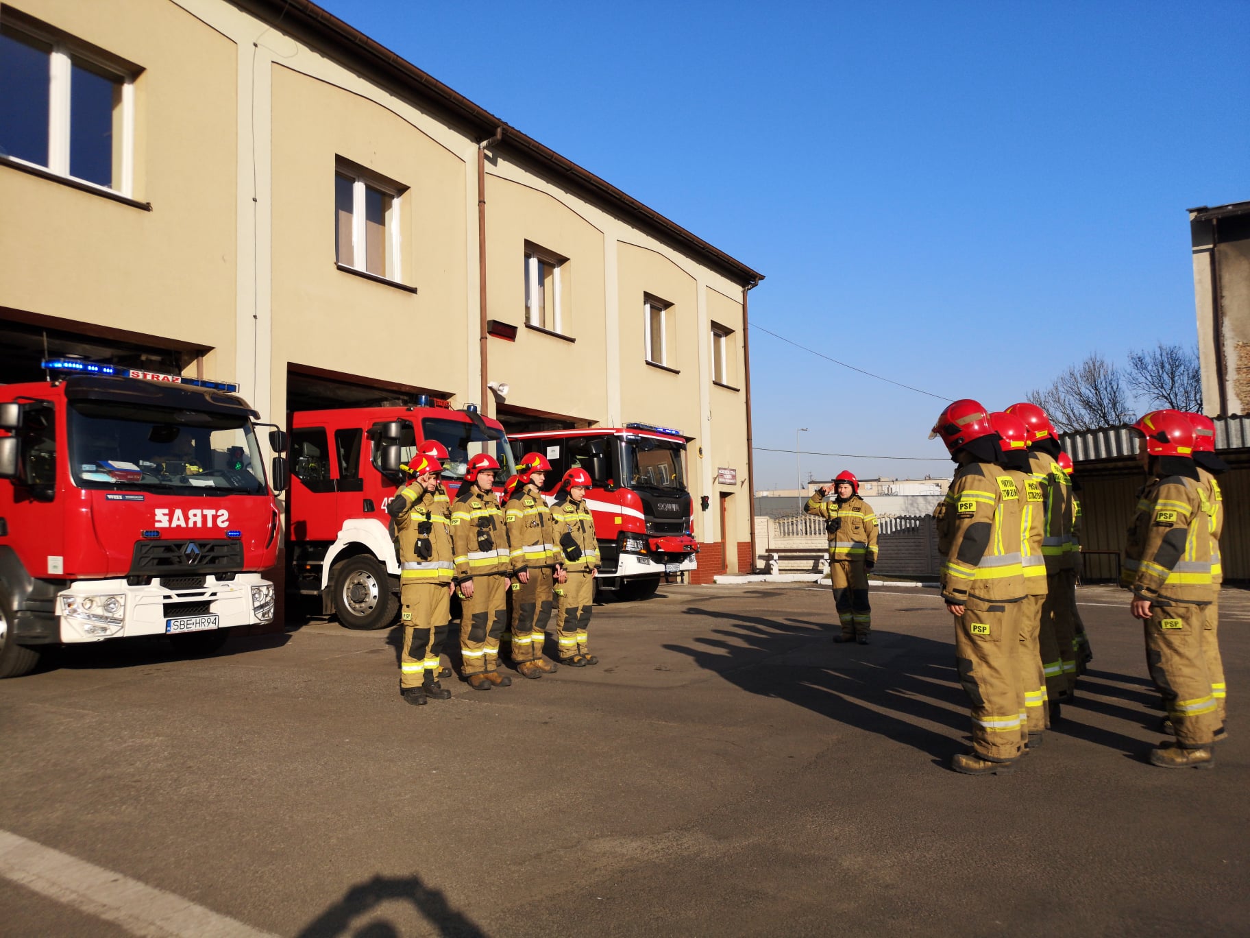 Podczas dzisiejszej zmiany służby, będzińscy strażacy uczcili minutą ciszy śmierć ukraińskich strażaków, którzy stracili życie na służbie. Od początku konfliktu zginęło osiemnastu strażaków.