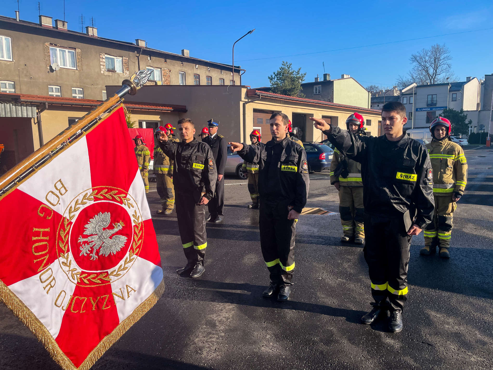 10 listopada 2021 roku na terenie Komendy Powiatowej Państwowej Straży Pożarnej w Będzinie odbył się uroczysty apel, podczas którego trzech nowych funkcjonariuszy dokonało ślubowania na sztandar.