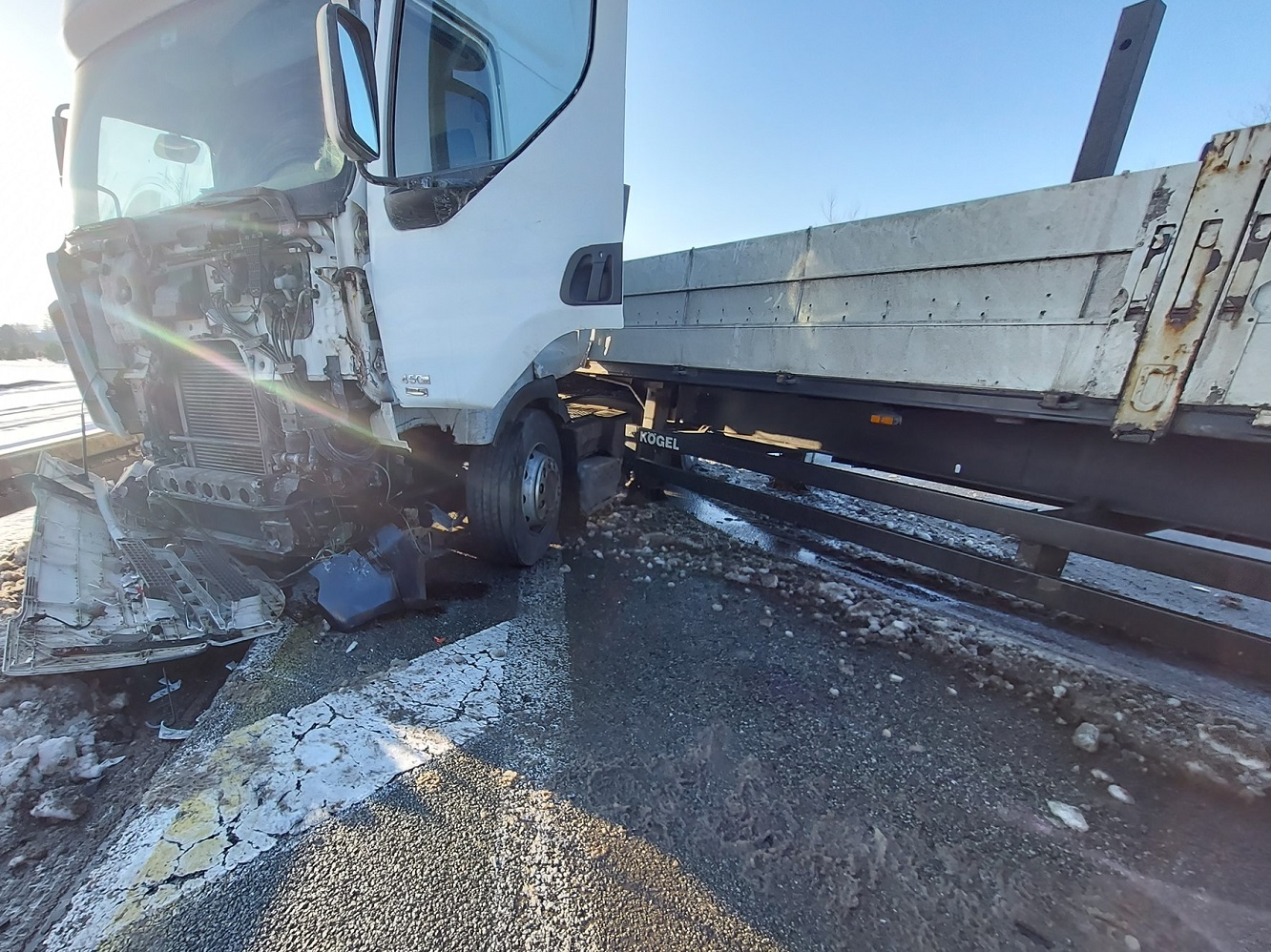 Po dojeździe na miejsce JOP KDR zastał po zderzeniu dwa samochody osobowe oraz samochód ciężarowy z naczepą. Wszystkie pojazdy pozostają na jezdni, samochód ciężarowy blokuje S-1 w obu kierunkach. Wszystkie osoby podróżujące opuściło pojazdy przed przybyciem JOP. W wypadku poszkodowane zostały cztery osoby podróżujące jednym z samochodów osobowych (trzy osoby dorosłe oraz jedno dziecko). Działania JOP polegały na: