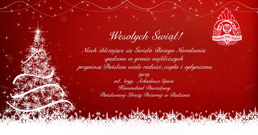 Życzenia Komendanta Powiatowego PSP w Będzinie 23.12.2020 Opracowanie: mł. asp. Jarosław Mroźla, KP PSP w Będzinie Zdjęcia (1) Pokaż zdjęcie 1 z galerii.