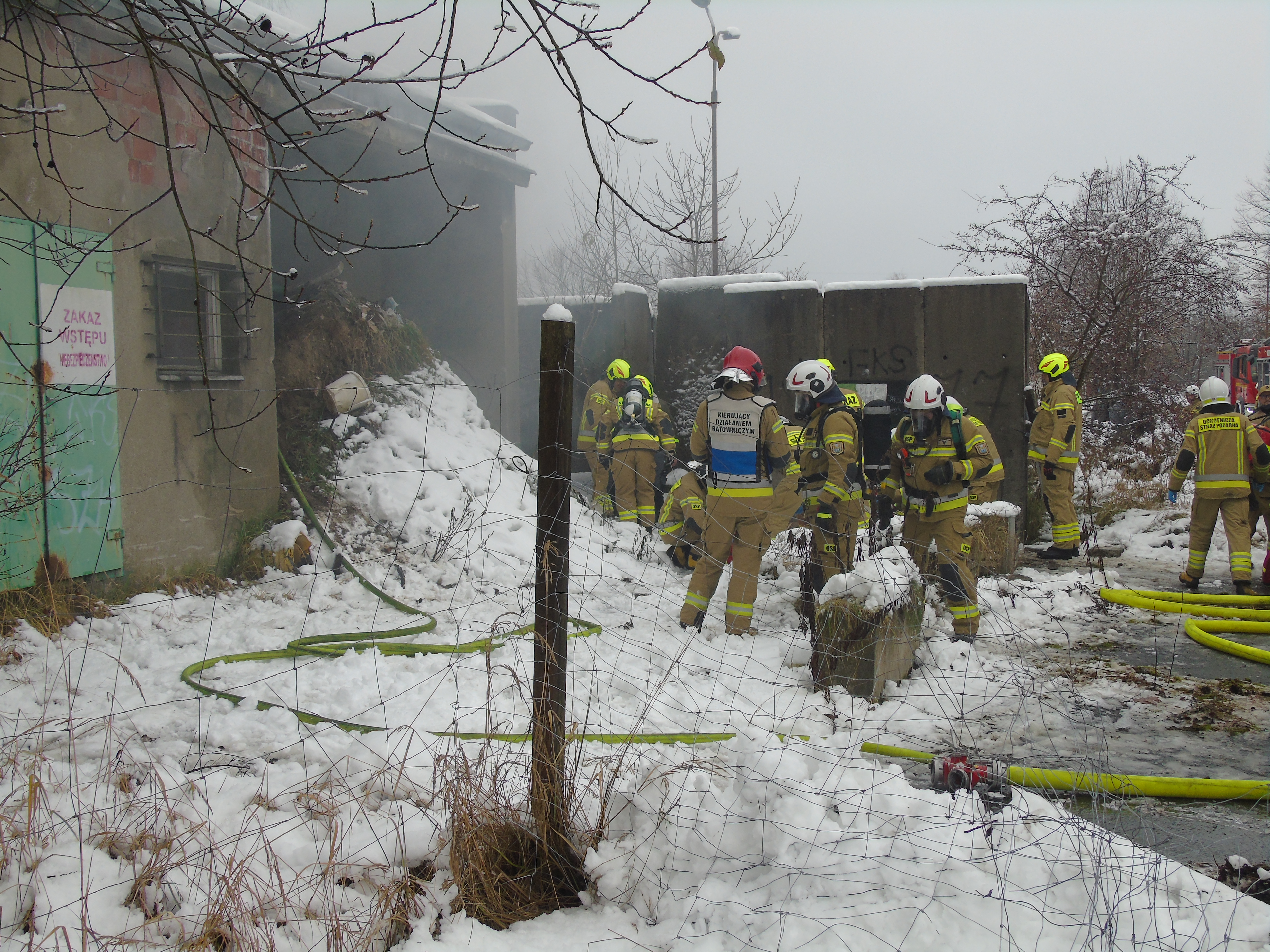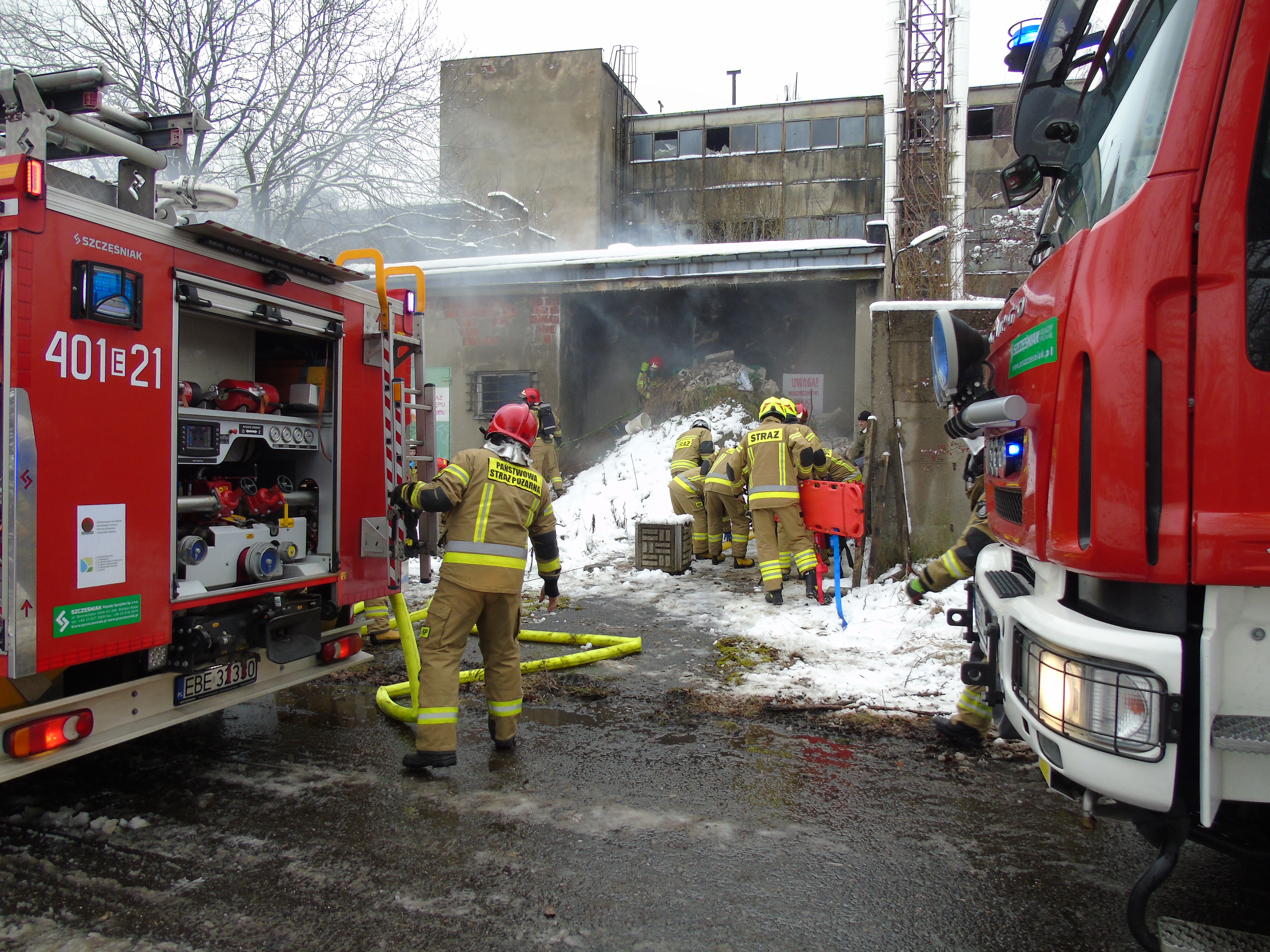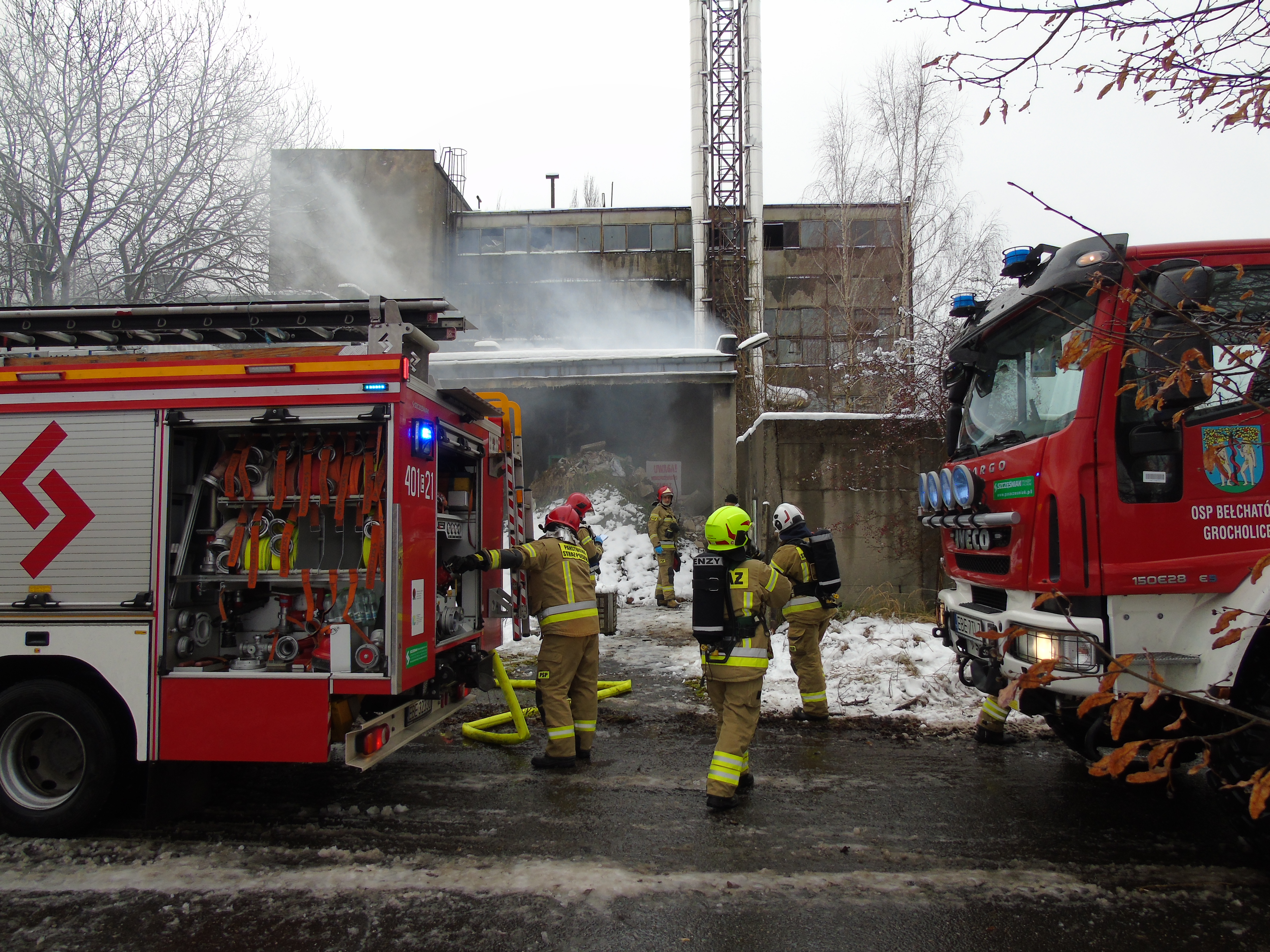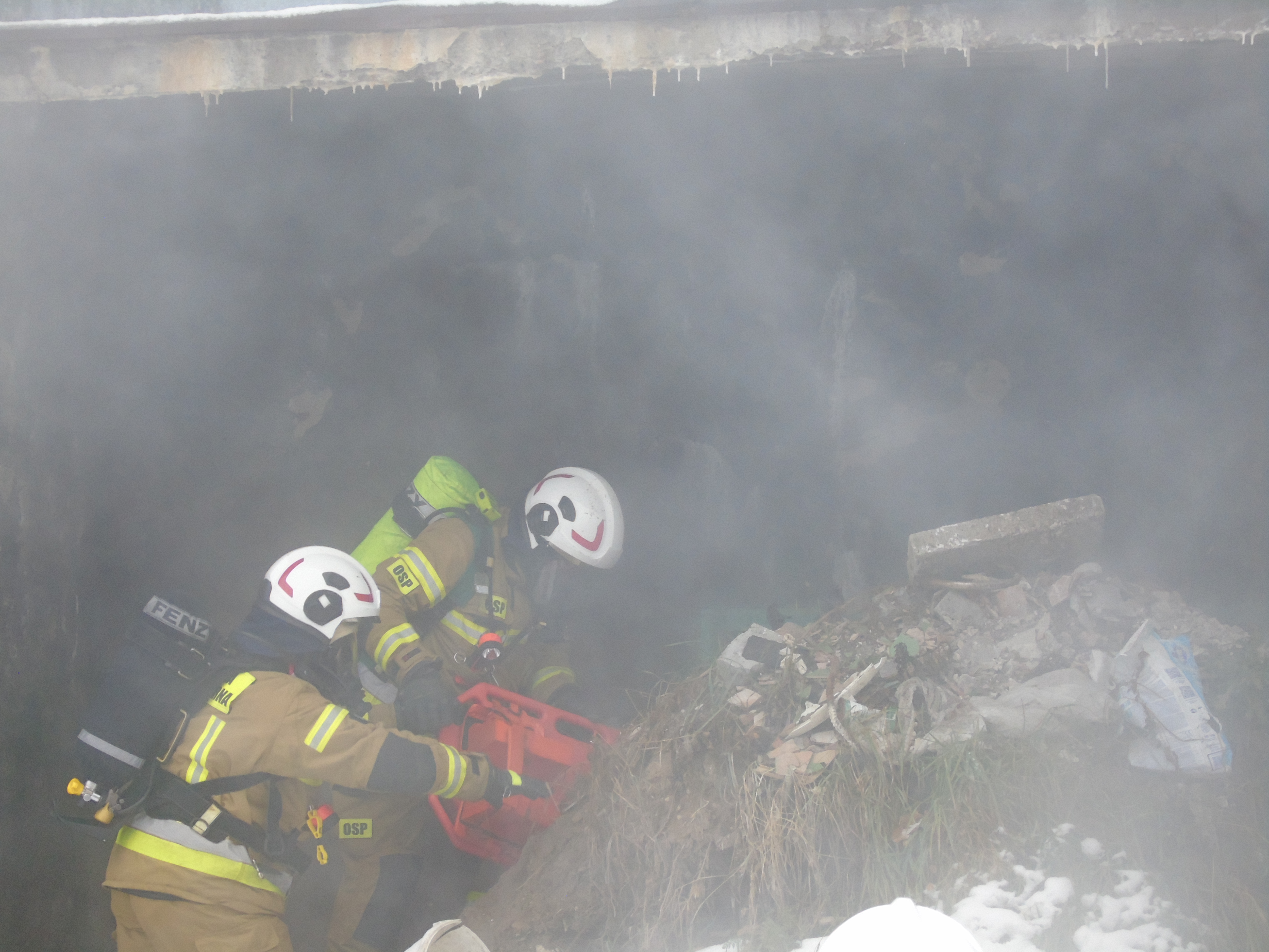 Celem ćwiczeń było sprawdzenie możliwości taktycznych zastępów podczas pożaru i częściowemu zawalenia się budynku kotłowni.