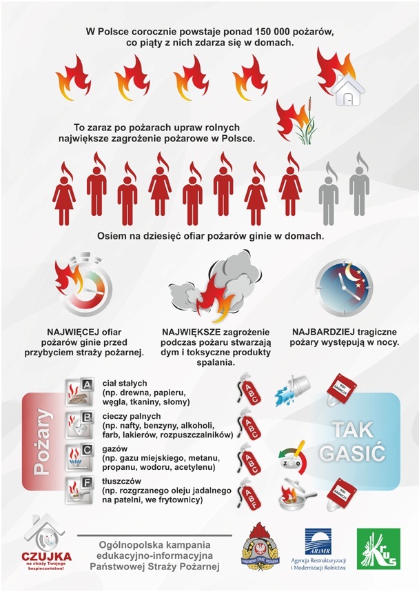 W okresie jesienno-zimowym, w naszym kraju w mieszkaniach i domach jednorodzinnych wzrasta ryzyko powstania pożarów. Najczęściej dochodzi do nich w wyniku wad, albo niewłaściwej eksploatacji urządzeń grzewczych, elektrycznych i gazowych. W tym samym okresie odnotowywany jest także wzrost liczby zatruć tlenkiem węgla, zwanym "cichym zabójcą", gdyż jest niewidoczny oraz nie ma smaku, ani zapachu.