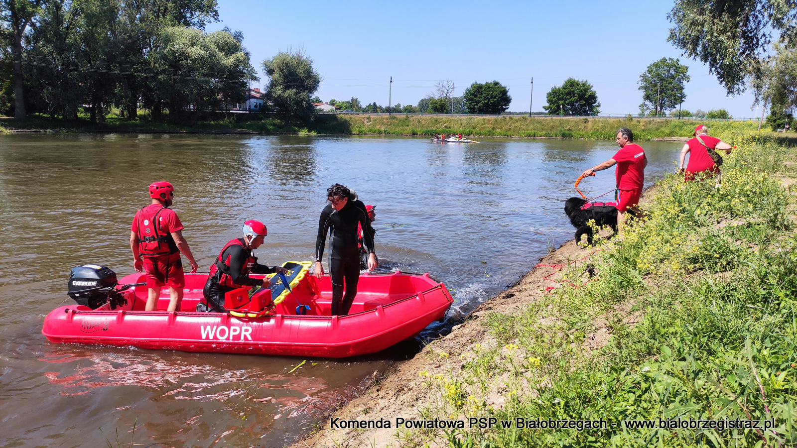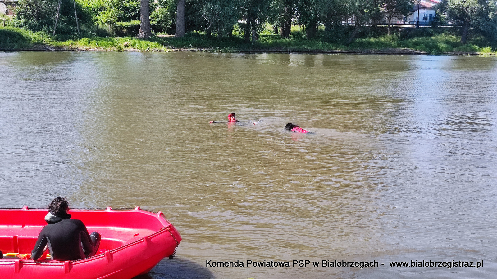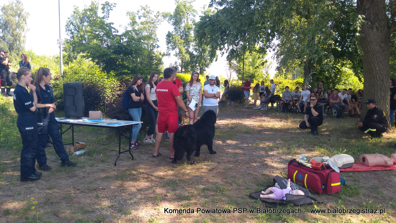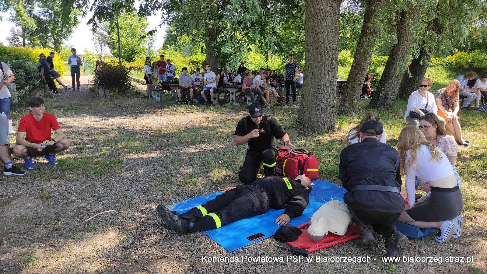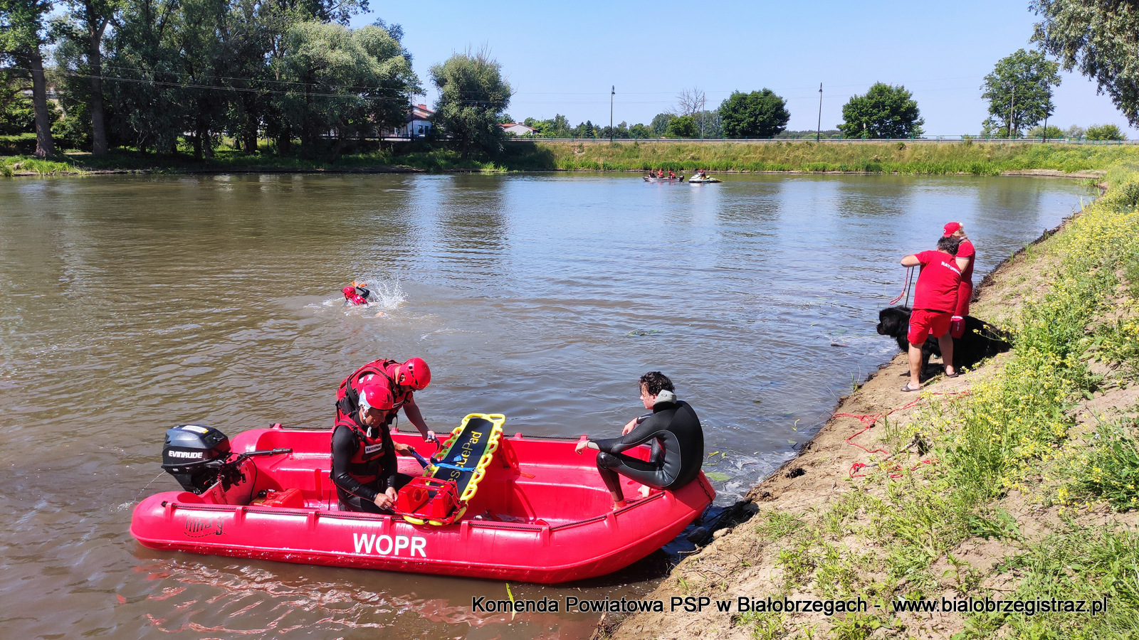 o zagrożeniach, jakie pojawić się mogą podczas wypoczynku nad wodą. Uczniowie mogli obserwować pokazy ratownictwa wodnego w wykonaniu ratowników WOPR Białobrzegi oraz strażaków JRG Białobrzegi. W ramach ćwiczeń zrealizowano kilka scenariuszy: m.in. podejmowanie z wody poszkodowanego nieprzytomnego przy pomocy skutera wodnego i deski, podejmowanie z wody przytomnego przy pomocy łodzi motorowej. Ponadto