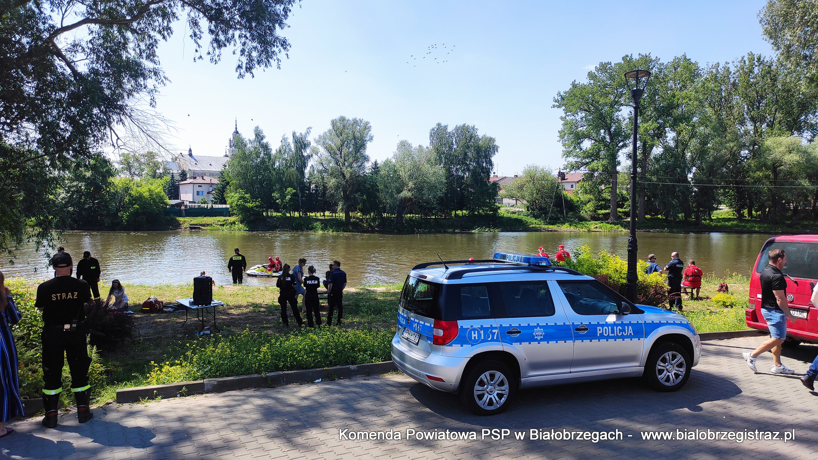 Strażacy KP PSP oraz funkcjonariusze Policji wspierani przez Wodne Ochotnicze Pogotowie Ratunkowe w Białobrzegach (wraz z ratowniczym psem Bazylem), przeprowadzili działania w ramach akcji „Bezpieczne Wakacje 2021”. Przypominali młodzieży, jak należy się zachowywać, aby uniknąć zagrożeń podczas letniego wypoczynku, w szczególności nad wodą.
