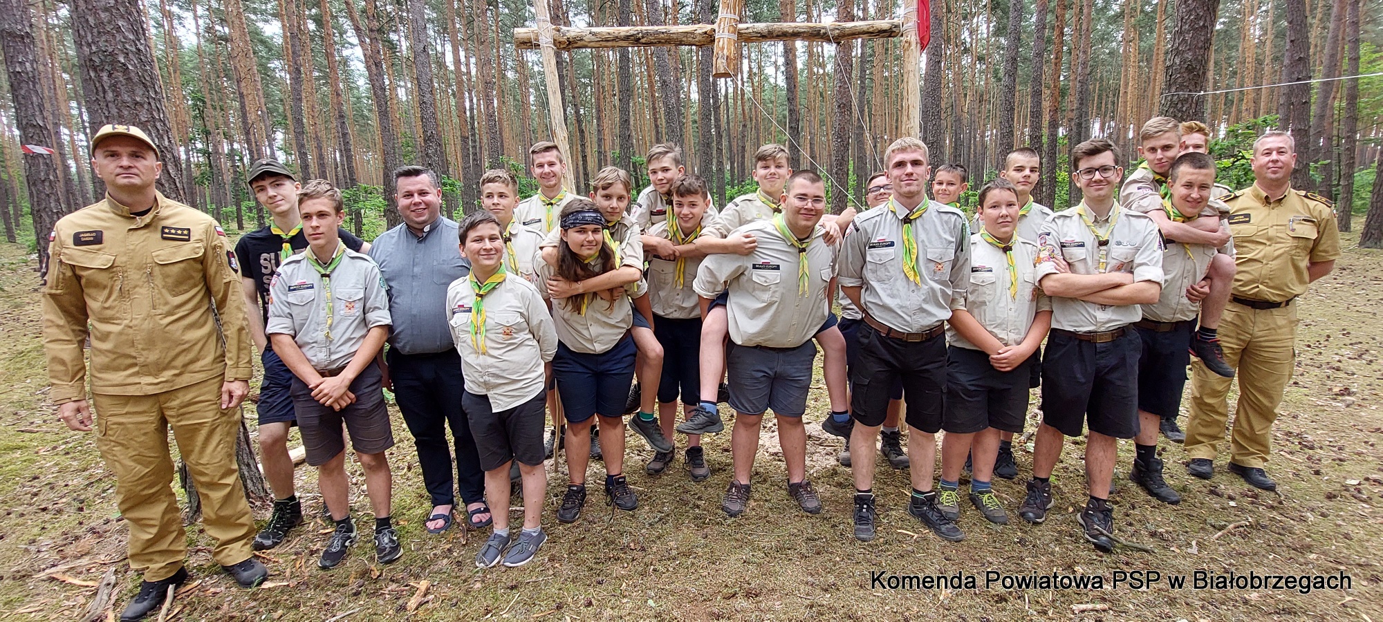 Funkcjonariusze Komendy Powiatowej Państwowej Straży Pożarnej w Białobrzegach 03.07.2023r. wizytowali obóz harcerski.