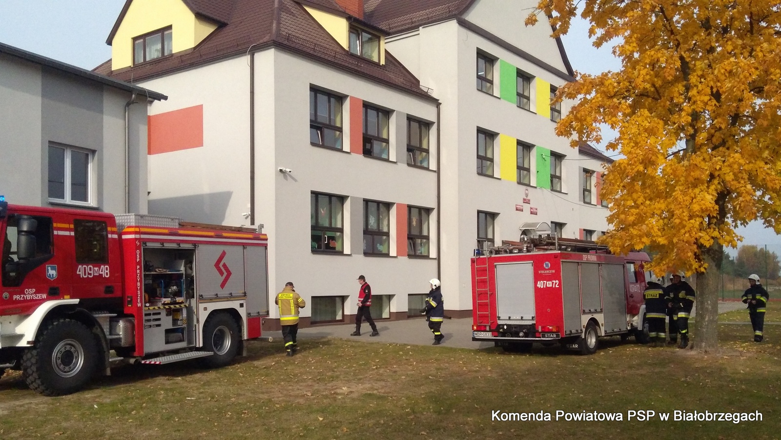 Ćwiczenia i ewakuacja szkoły w Przybyszewie