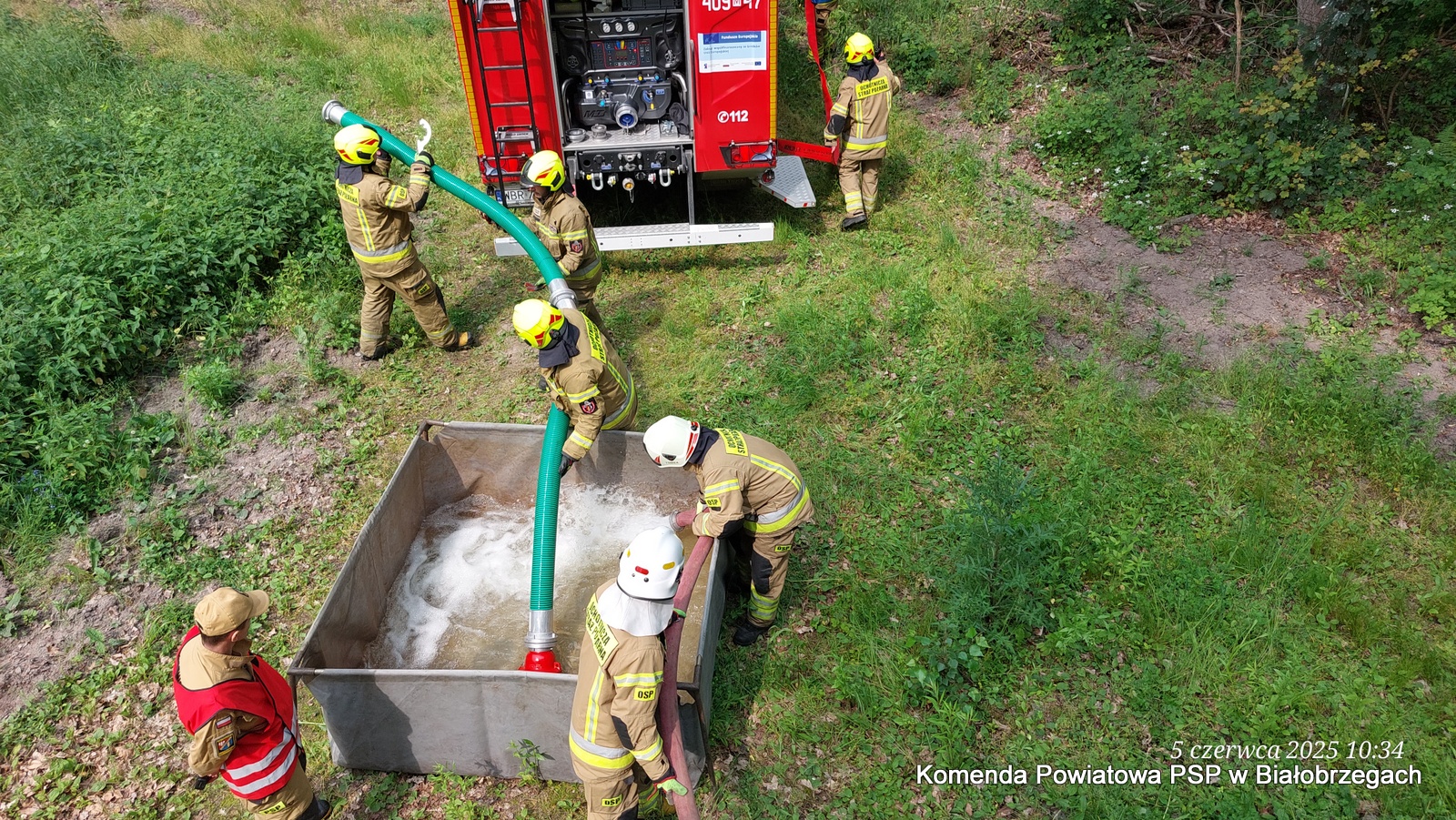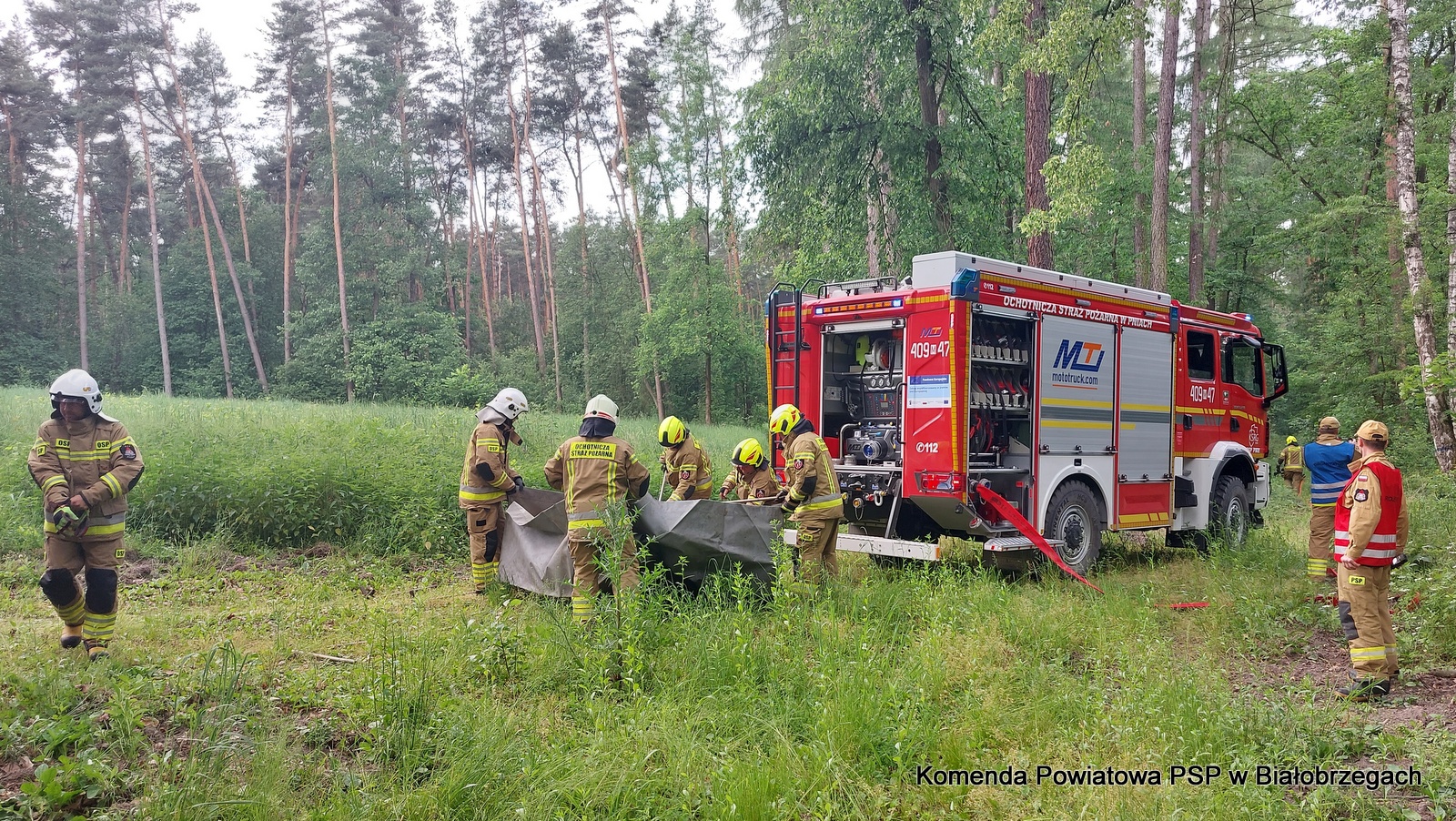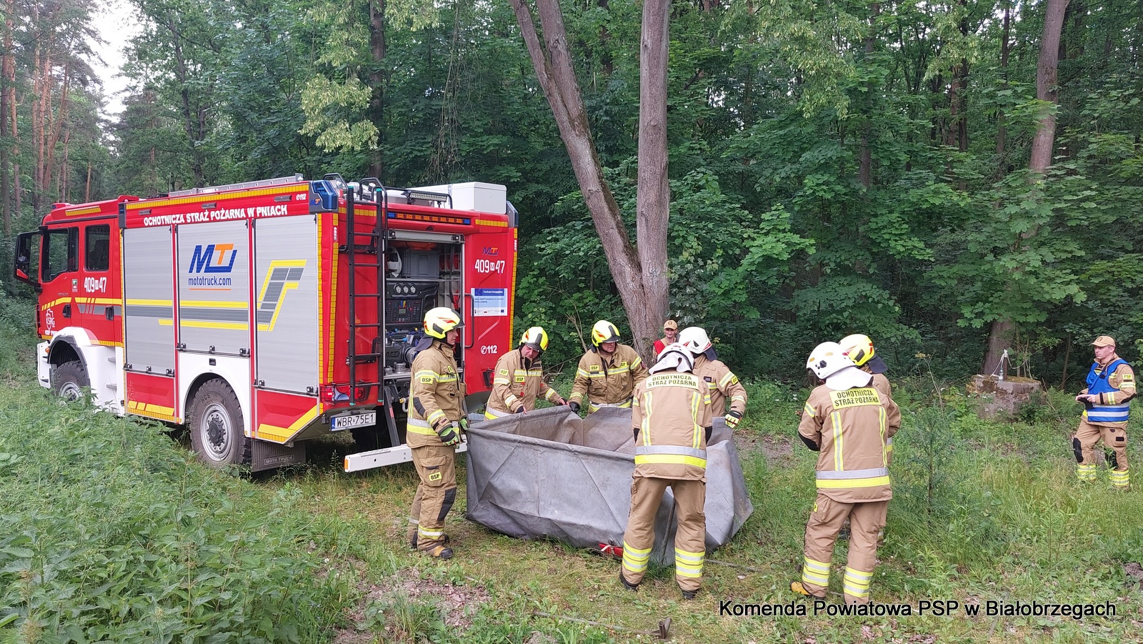 W działaniach wzięło udział łącznie 38 strażaków z jednostek: OSP Pnie, OSP Promna, OSP Daltrozów, OSP Rykały, OSP Broniszew, OSP Biejków oraz z Jednostki Ratowniczo-Gaśniczej PSP w Białobrzegach. Strażacy ćwiczyli budowę linii wężowych na znaczne odległości, organizację punktów czerpania wody i koordynację działań w trudnych warunkach leśnych.