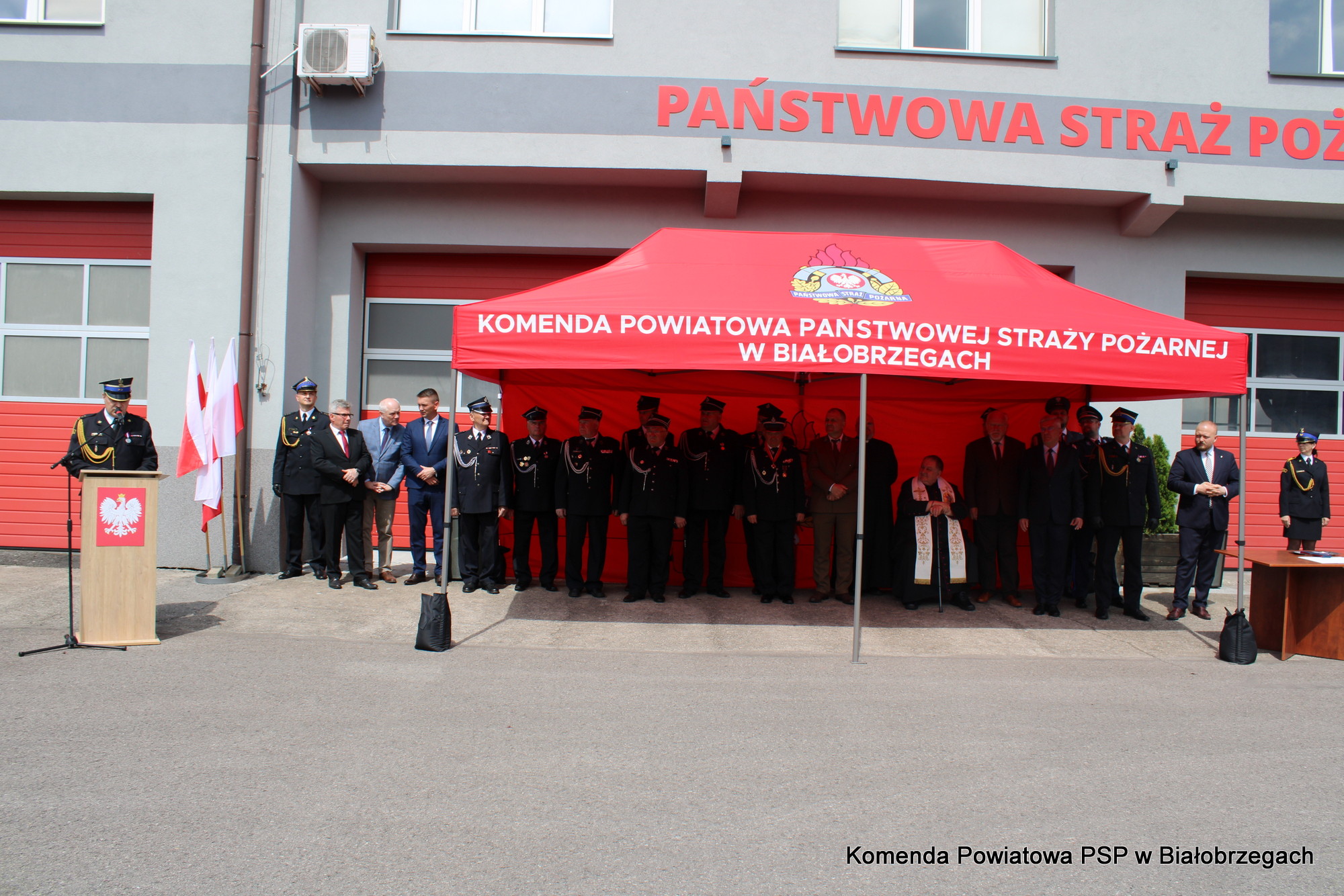 Okolicznościowy apel odbył się na placu zewnętrznym Komendy Powiatowej PSP w Białobrzegach. Meldunek o rozpoczęciu uroczystego apelu przyjął Zastępca Mazowieckiego Komendanta Wojewódzkiego PSP w Warszawie st. bryg. Tomasz Cybul, po czym dokonał przeglądu pododdziału i przywitał się z funkcjonariuszami. Następnie został odegrany i odśpiewany hymn państwowy podczas podniesienia flagi państwowej. Następnie bryg. Grzegorz Gozdek Komendant Powiatowy PSP w Białobrzegach przywitał przybyłych gości i przedstawił działalność Komendy Powiatowej PSP oraz złożył serdeczne podziękowania parlamentarzystom, samorządowcom powiatu białobrzeskiego oraz wszystkim, którzy wspierają działania komendy.