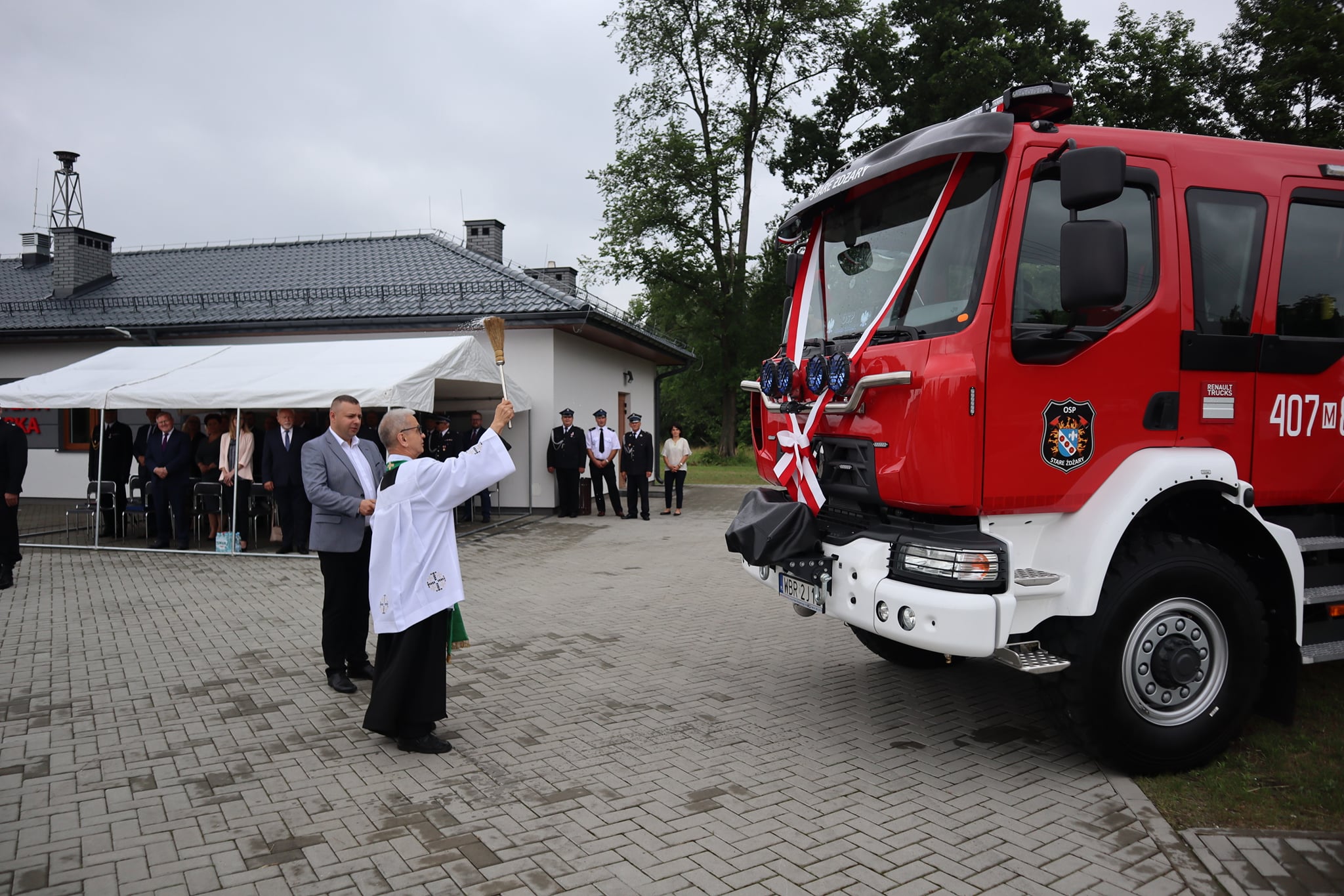 Zaproszonych gości przywitał Prezes Ochotniczej Straży Pożarnej w Starych Żdżarach dh Radosław Kujawiak. Po przywitaniu gości i przedstawieniu historii jednostki odbyło się uroczyste poświęcenie i przekazanie średniego samochodu ratowniczo – gaśniczego Renault jednostce OSP Stare Żdżary.