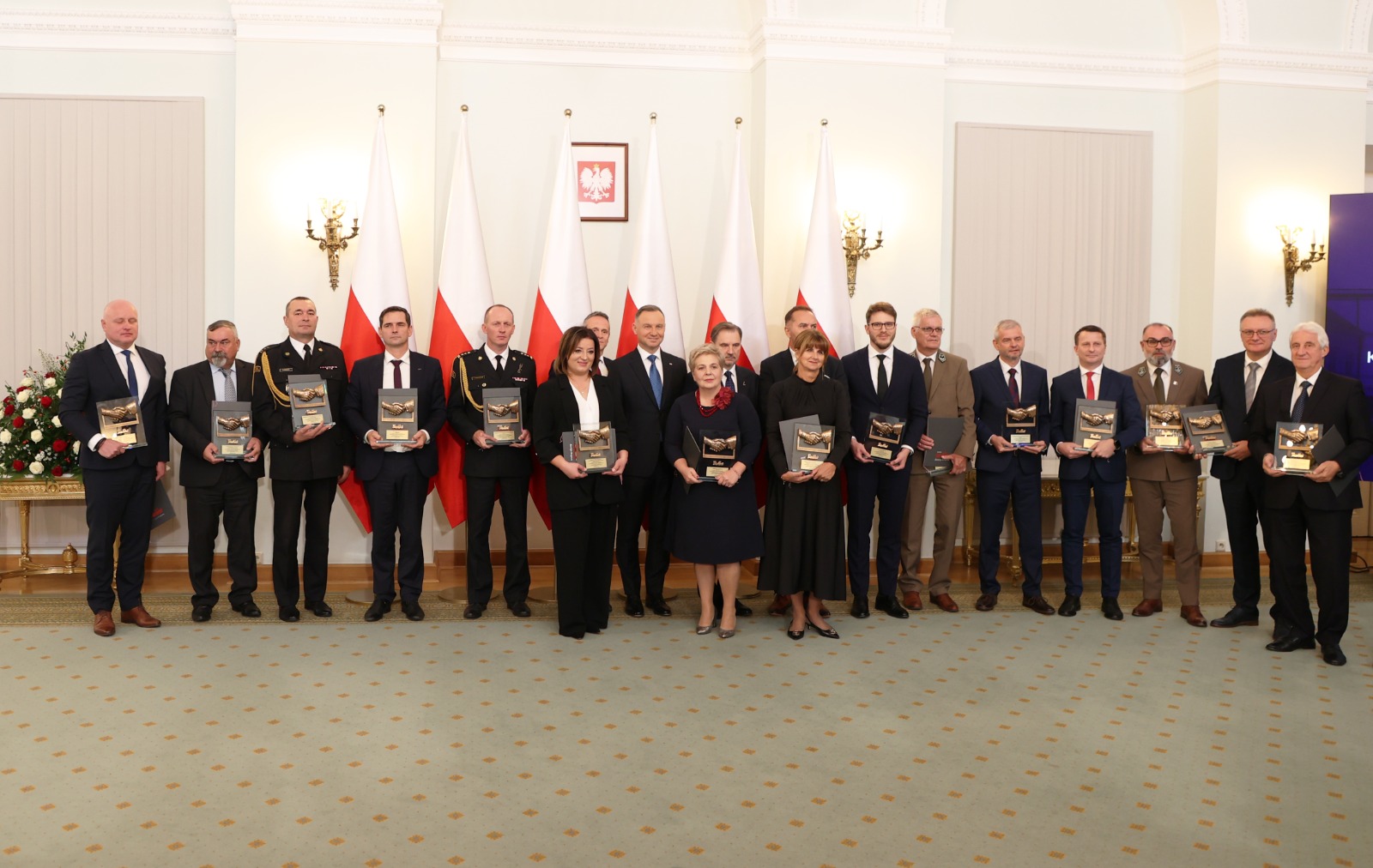Komenda Powiatowa Państwowej Straży Pożarnej w Sejnach oraz Komenda Powiatowa Państwowej Straży Pożarnej w Białobrzegach otrzymały dziś statuetkę oraz Certyfikat XV edycji Konkursu „Pracodawca Przyjazny Pracownikom”, które podczas uroczystej gali w Pałacu Prezydenckim z rąk Prezydenta Rzeczypospolitej Polskiej Pana Andrzeja Dudy oraz Przewodniczącego NSZZ „Solidarność” Piotra Dudy, odebrali komendant powiatowy PSP w Sejnach st. bryg. Artur Przeborowski oraz komendant powiatowy PSP w Białobrzegach bryg. Grzegorz Gozdek. Podczas uroczystości obecny był także mazowiecki komendant wojewódzki PSP nadbryg. Jarosław Piotrowski.