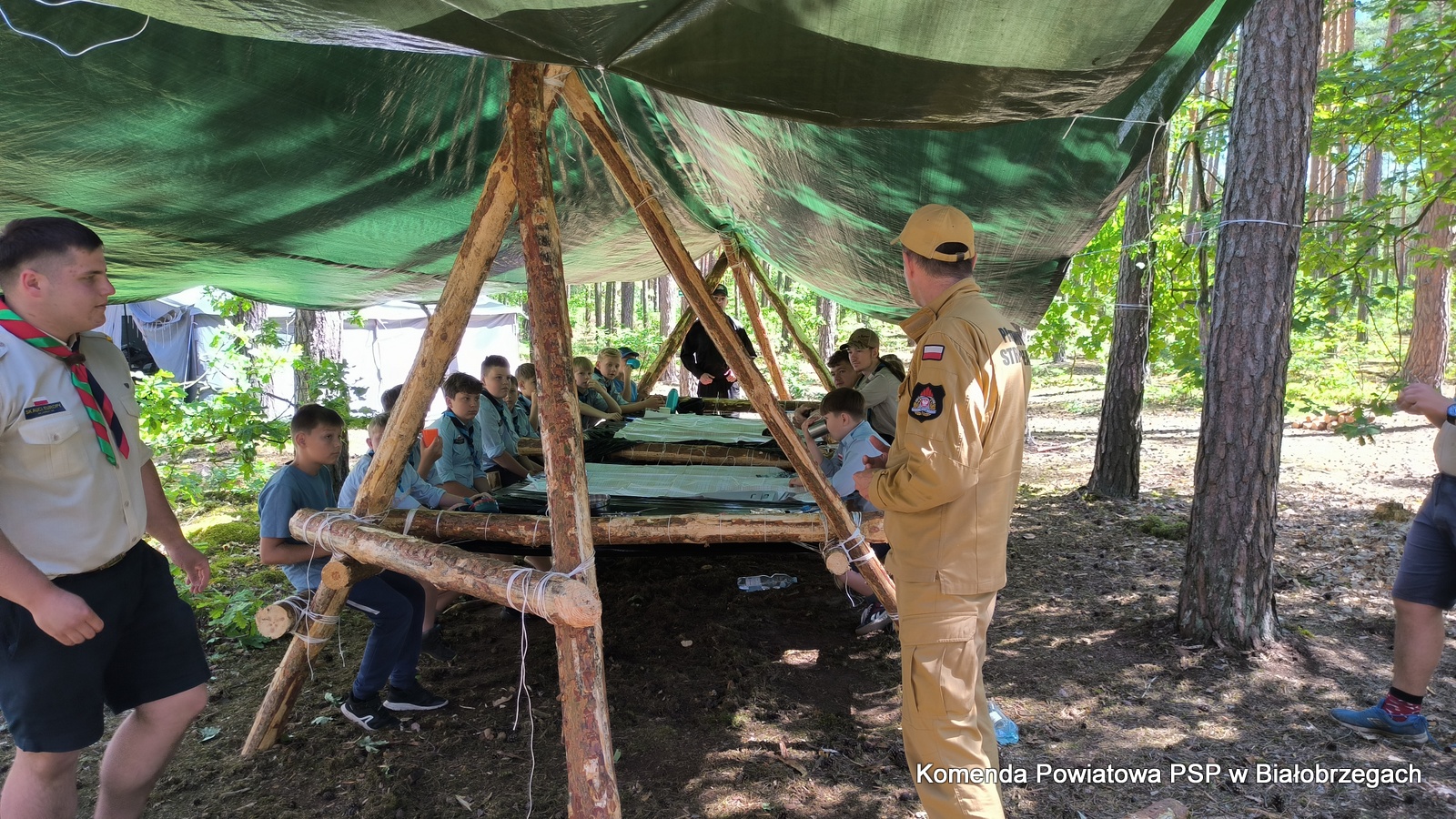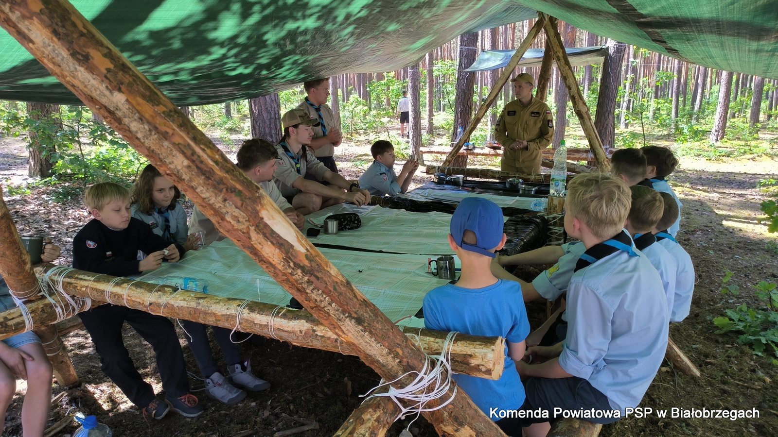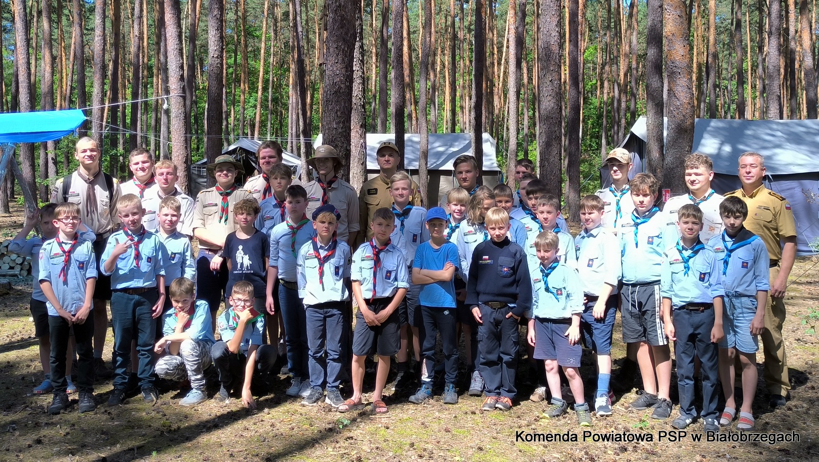 Już pierwszego dnia obozu, 30 czerwca, odbyła się wizytacja funkcjonariuszy Komendy Powiatowej Państwowej Straży Pożarnej w Białobrzegach. W ramach działań prewencyjnych przeprowadzono próbną ewakuację, która przebiegła sprawnie i zgodnie z procedurami. Harcerze wzięli także udział w szkoleniu z zakresu łączności oraz uczestniczyli w prelekcji dotyczącej potencjalnych zagrożeń, jakie mogą wystąpić podczas wypoczynku w terenie.