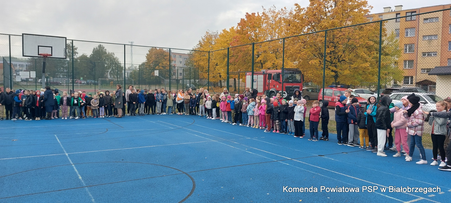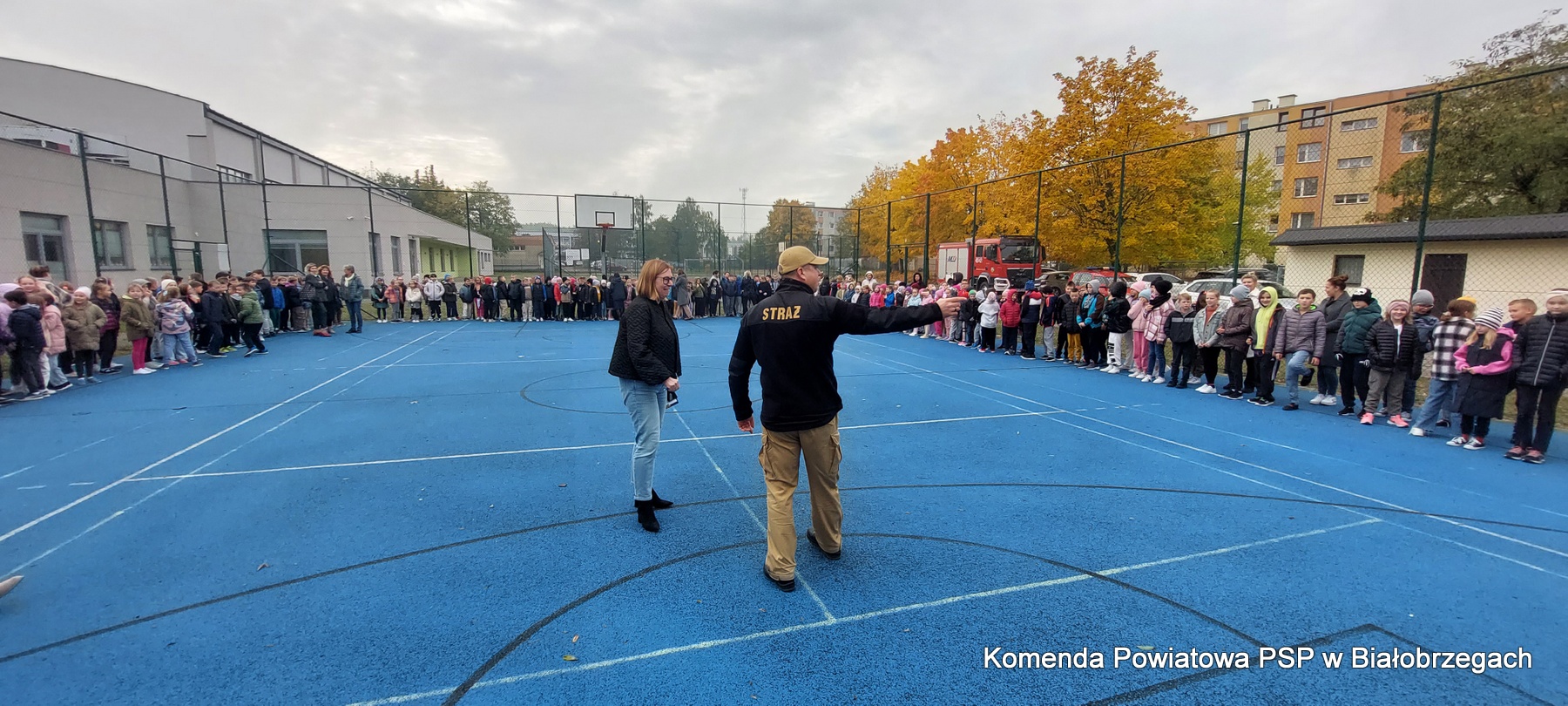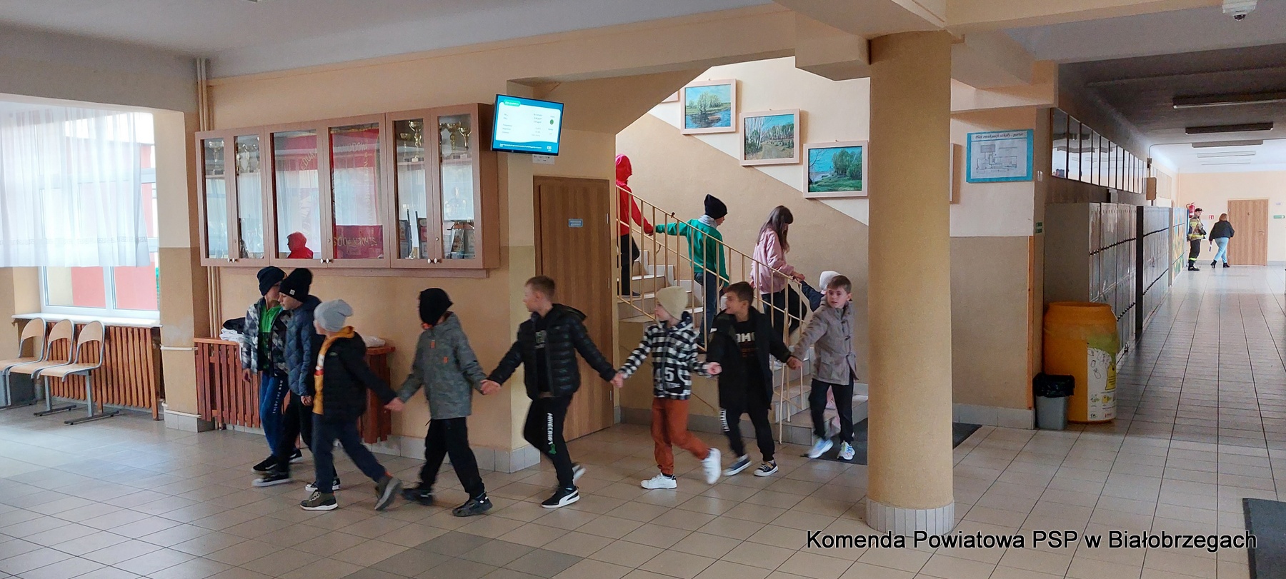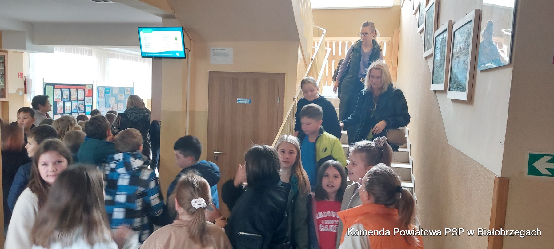 24.10.2023r. o godz. 10.00 w Publicznej Szkole Podstawowej im. Komisji Edukacji Narodowej w Białobrzegach rozbrzmiał umówiony sygnał dzwonka oznaczający pilną potrzebę opuszczenia budynku. Po kilkunastu minutach rozpoczęła się ewakuacja starszych uczniów z budynku przy ulicy Reymonta. Uczniowie i nauczyciele, zachowując środki bezpieczeństwa, szybko opuścili budynek szkoły.