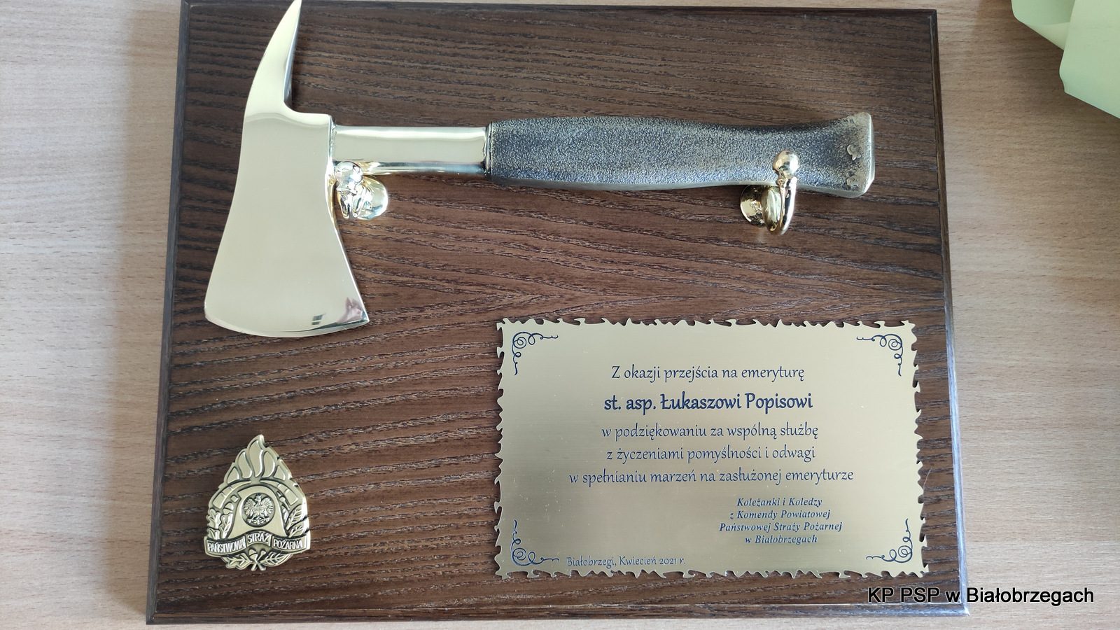 Z dniem 20 kwietnia 2021 roku st. asp. Łukasz Popis zakończył służbę w Państwowej Straży Pożarnej i przeszedł na zaopatrzenie emerytalne. Z tej okazji w Komendzie Powiatowej PSP w Białobrzegach odbyła się uroczysta zbiórka.
