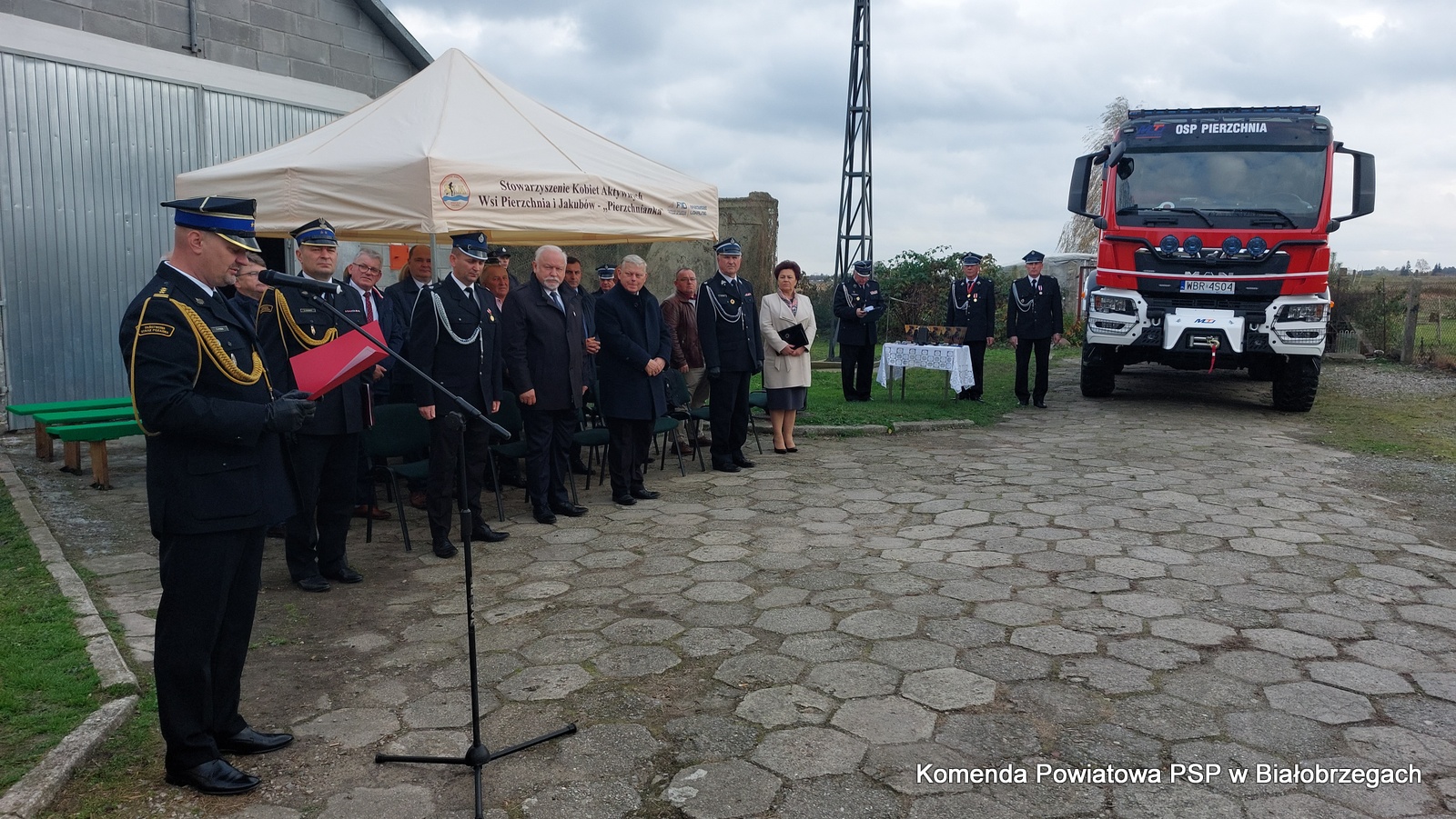 W dalszej kolejności st. bryg. Tomasz Cybul Zastępca Komendanta Wojewódzkiego PSP w Warszawie odczytał akt przekazania pojazdu pożarniczego dla jednostki OSP Pierzchnia oraz przekazał akt naczelnikowi osp.