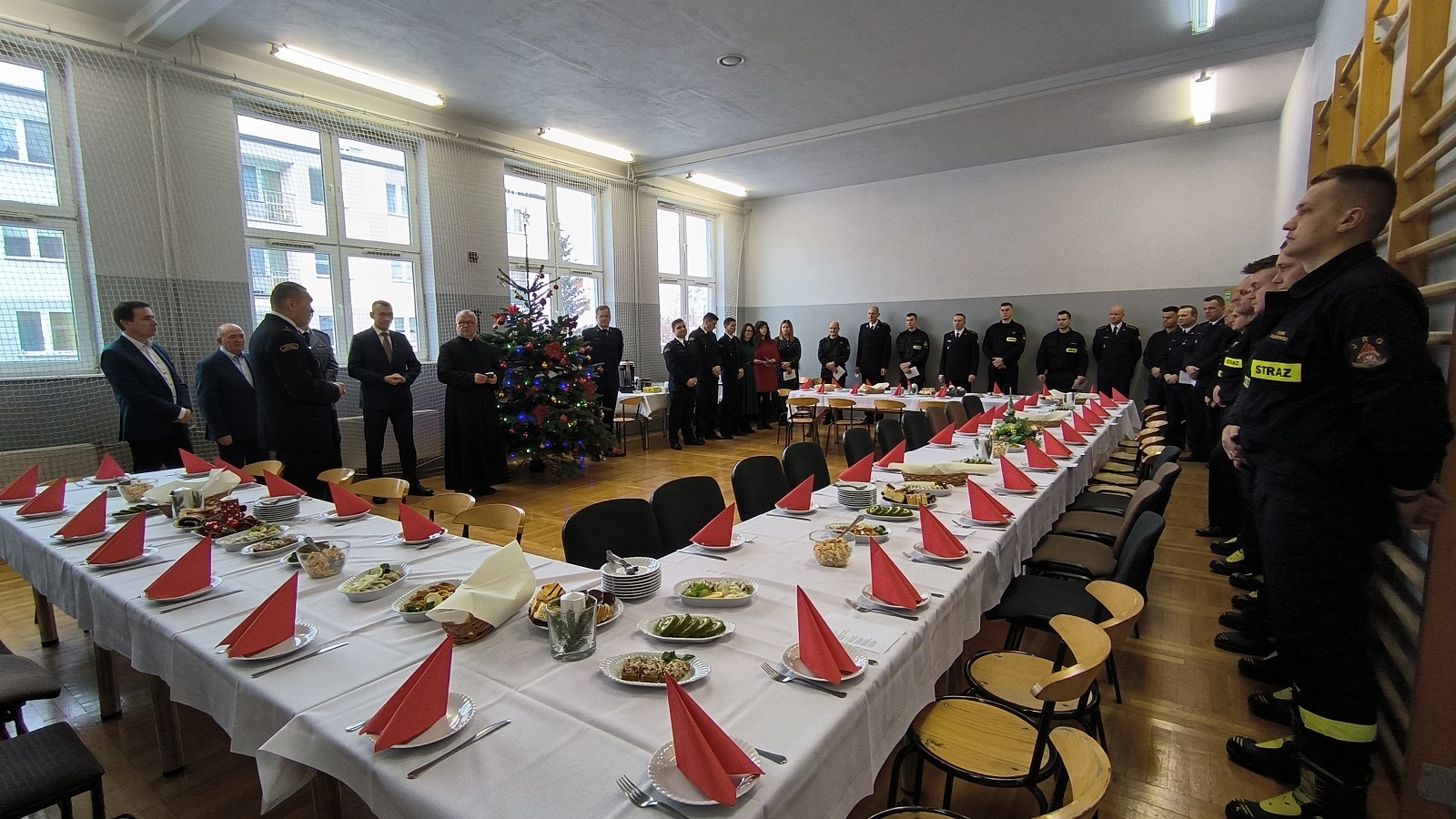 W okolicznościowych przemówieniach gości padły słowa podziękowania oraz wyrazy uznania za trud i zaangażowanie włożone przez pracowników i funkcjonariuszy komendy na rzecz bezpieczeństwa i ochrony przeciwpożarowej powiatu białobrzeskiego, a duszpasterskie słowo wygłosił ksiądz kapelan. Po odczytaniu fragmentu Pisma Świętego i zaśpiewaniu kolęd przyszedł czas na przełamywanie się opłatkiem i składanie sobie życzeń z okazji zbliżających się Świąt Bożego Narodzenia.