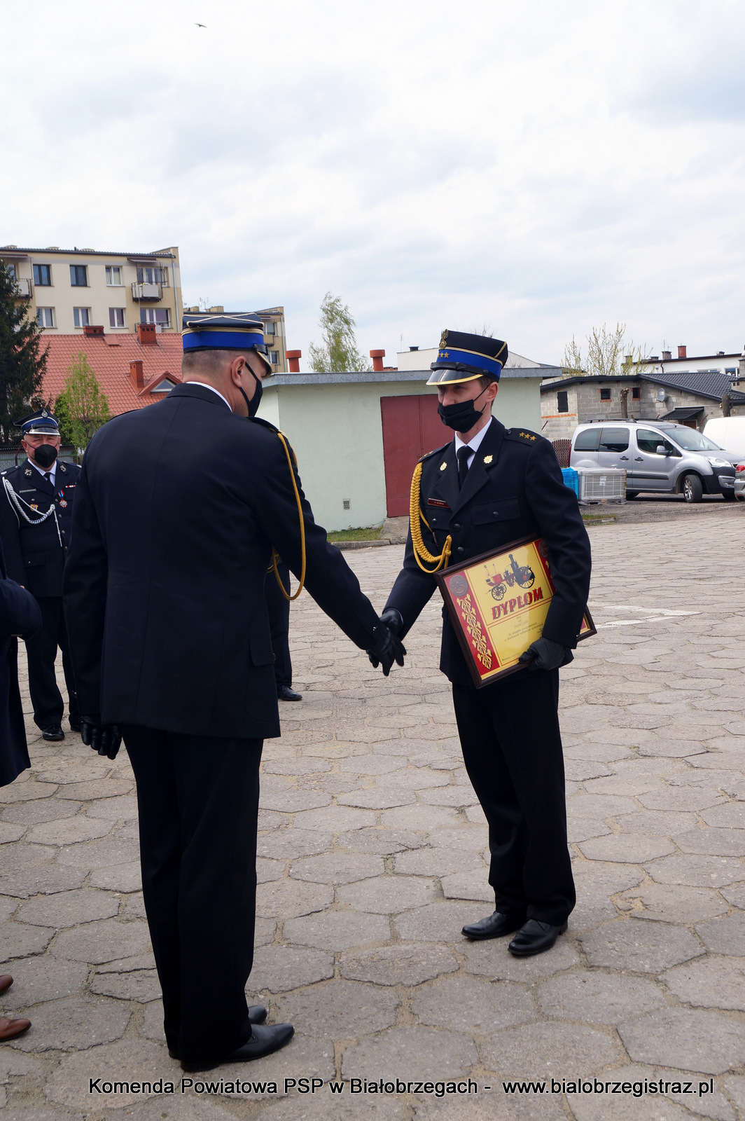 Podczas uroczystości wręczono dowódcy Jednostki Ratowniczo-Gaśniczej w Białobrzegach kpt. Hubertowi Górce, dyplom komendanta głównego PSP przyznawany za szczególne zaangażowanie w działalność ratowniczo-gaśniczą.