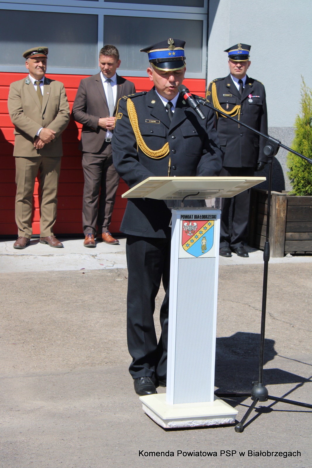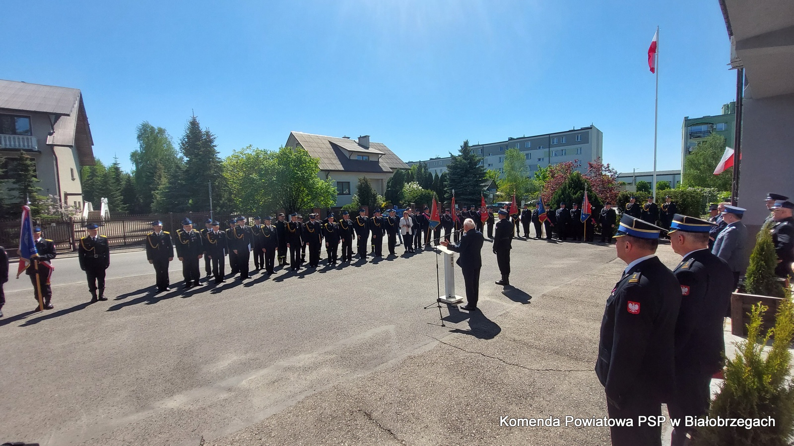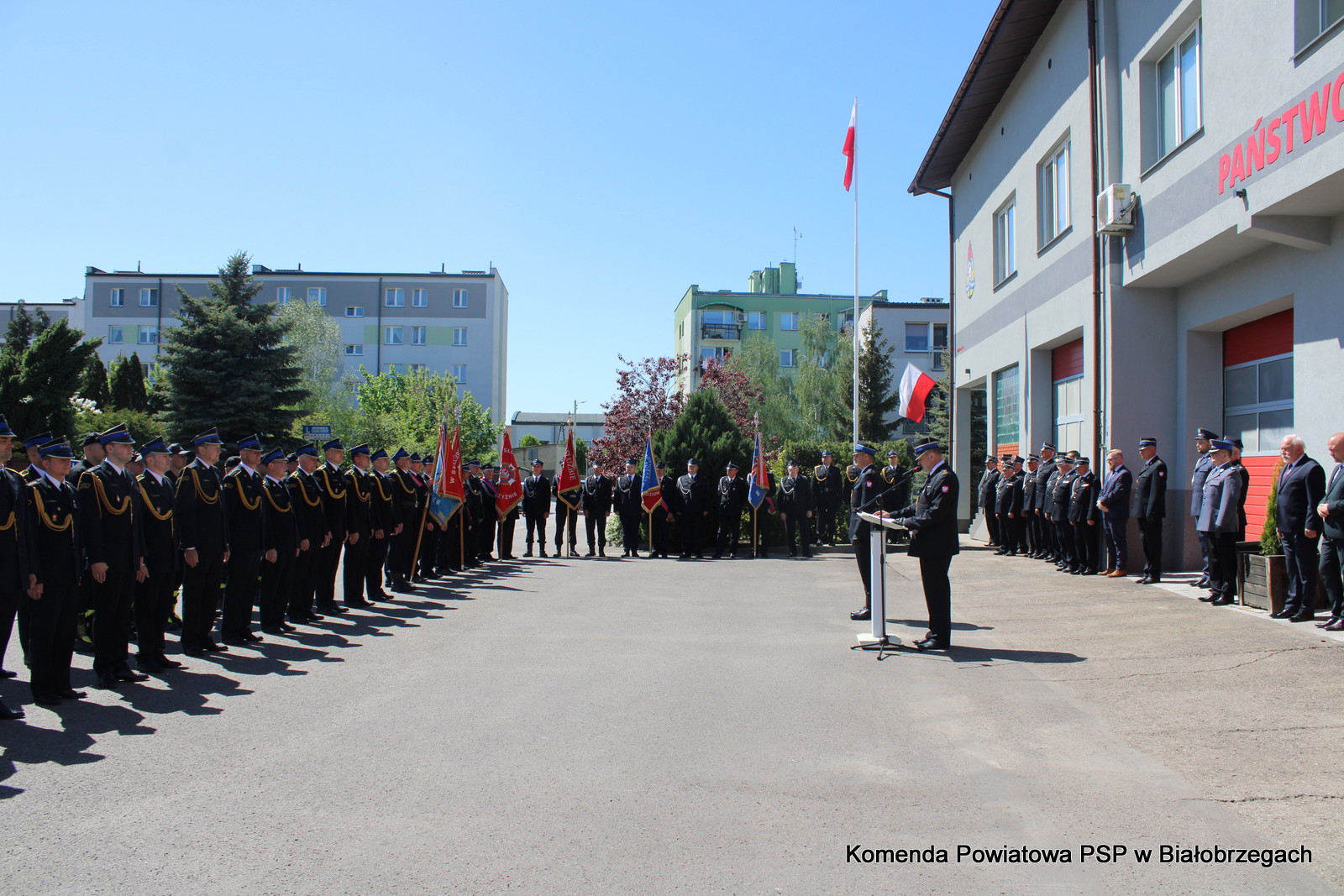 Apel okolicznościowy odbył się na placu zewnętrznym Komendy Powiatowej PSP w Białobrzegach Meldunek o rozpoczęciu przyjął przedstawiciel Mazowieckiego Komendanta Wojewódzkiego PSP Naczelnik Wydziału Szkolenia w Pionkach bryg. Robert Sałek, po czym dokonał przeglądu pododdziału i przywitał się z funkcjonariuszami. Następnie został odśpiewany hymn państwowy i nastąpiło podniesienie flagi państwowej. Następnie bryg. Grzegorz Gozdek Komendant Powiatowy PSP w Białobrzegach przywitał przybyłych gości i przedstawił działalność i rozwój naszej formacji od powstania Państwowej Straży Pożarnej.