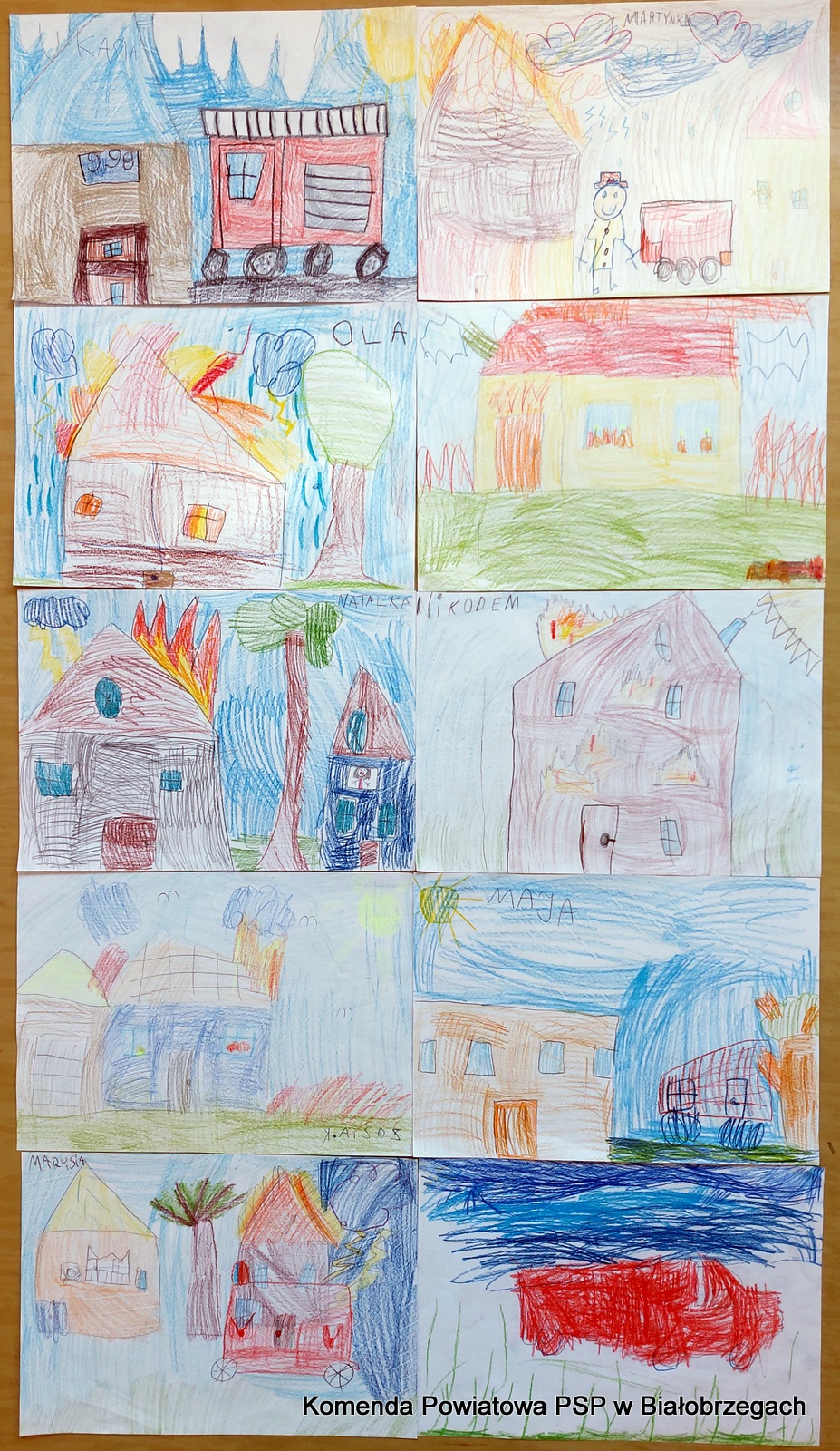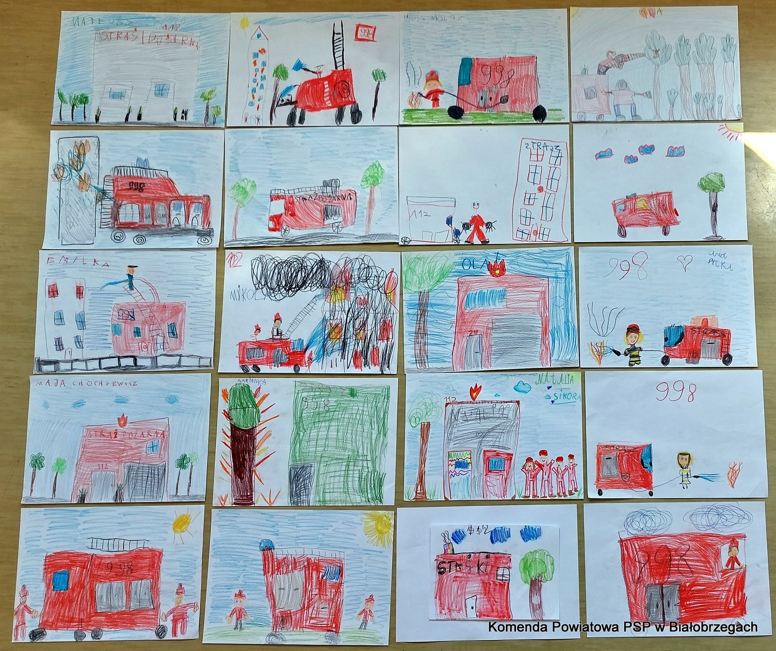 Na koniec odwiedzin dzieci złożyły strażakom okolicznościowe życzenia i piękne kolorowe prace o tematyce pożarniczej, za które serdecznie DZIĘKUJEMY.