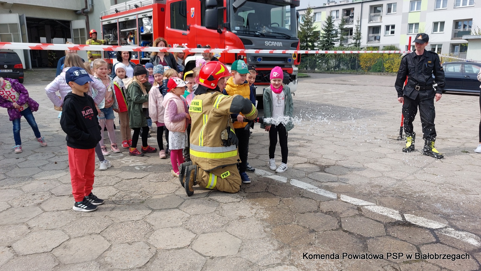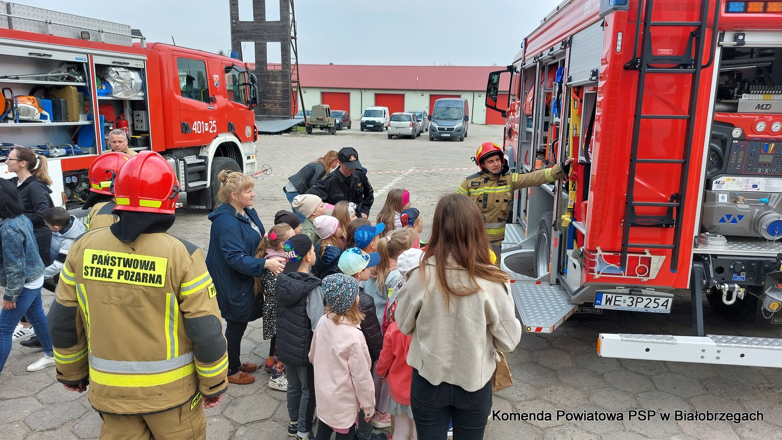 W czasie wizyty strażacy zaprezentowali dzieciom pojazdy pożarnicze, sprzęt ratowniczy i gaśniczy, wyposażenie specjalistyczne oraz ubrania i sprzęt ochrony osobistej. Dzieci mogły również zobaczyć jak wygląda wnętrze kabiny wozu strażackiego, jak strażacy gaszą wodą pożar i jak obsługują hydrauliczne narzędzia ratownicze.