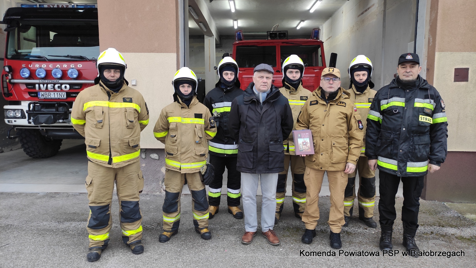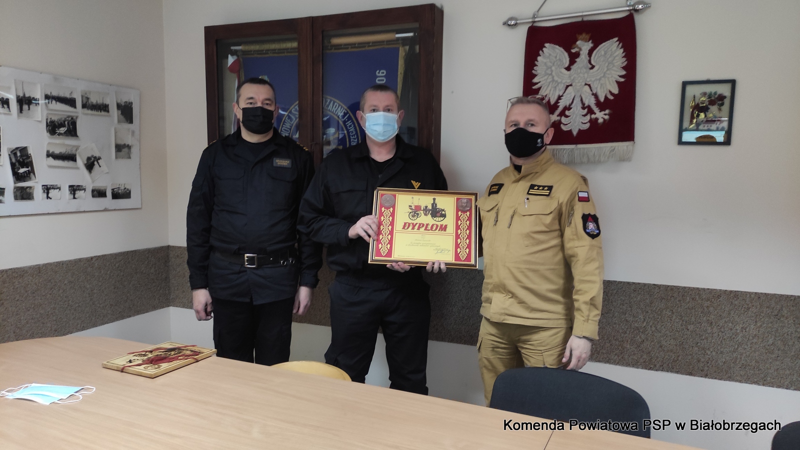 Ponadto podziękował za zaangażowanie i profesjonalizm podczas działań ratowniczo-gaśniczych oraz za wkład pracy włożony w utrzymanie jednostki i sprzętu. Wizyta była okazją do zapoznania się z warunkami socjalno-bytowymi w Komendzie oraz wyposażeniem sprzętowym Jednostki Ratowniczo Gaśniczej.