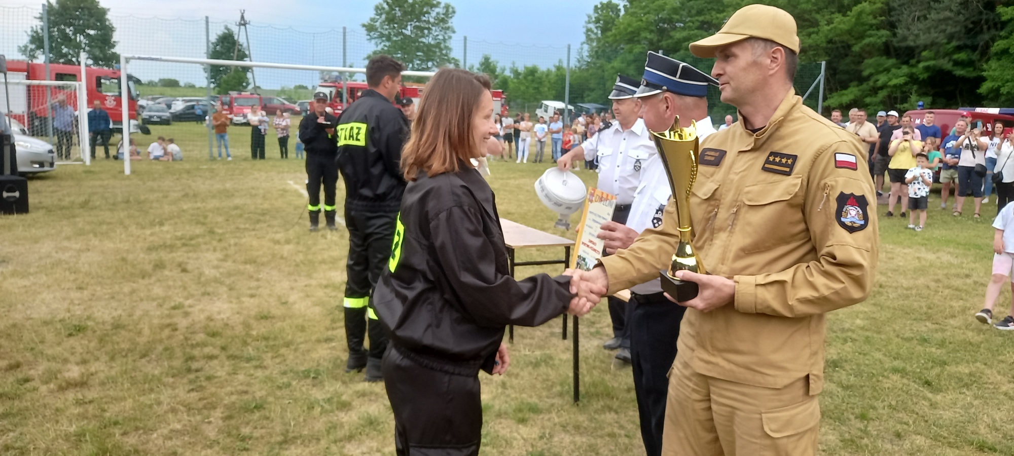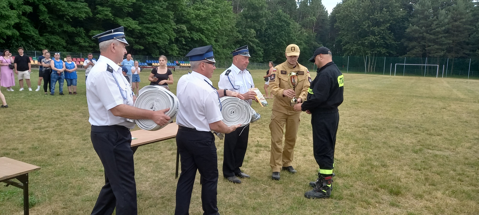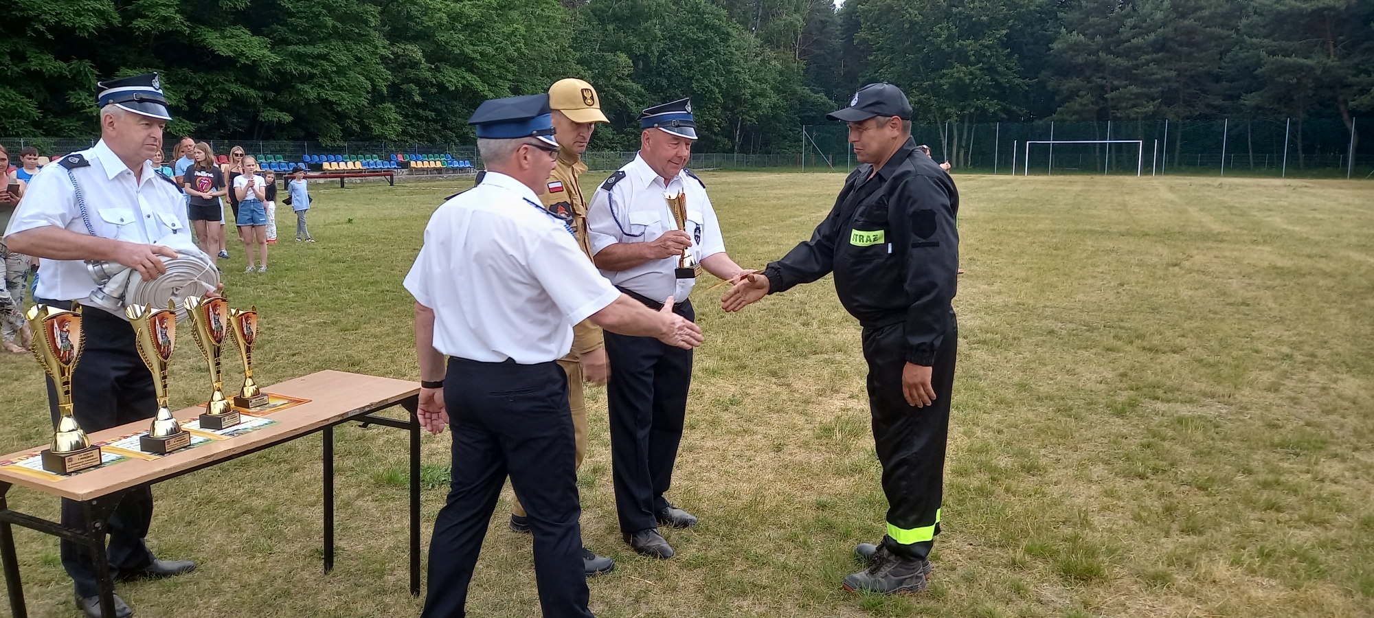 Puchary oraz nagrody wręczyli: Wójt Gminy Radzanów Sławomir Kruśliński, Prezes Zarządu Oddziału Gminnego ZOSP RP w Radzanowie dh Zbigniew Nowacki, Komendant Gminny OSP dh. Ryszard Dźwigulski oraz Zastępca Komendanta Powiatowego PSP w Białobrzegach st. kpt. Damian Jagiełło.