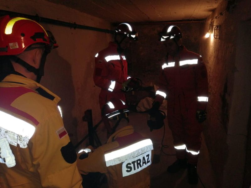 Strażacy ćwiczyli techniki poszukiwania osób oraz użycia specjalistycznego sprzętu w postaci wiertnic i kamery wziernikowej. Osoba została odnaleziona i uratowana.