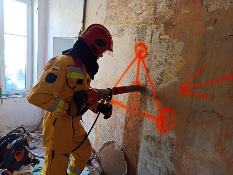 Strażacy ćwiczyli użycie geofonu, wykonywanie dotarcia do osób zagruzowanych poprzez wykonanie przebić w ścianach i stropach przy użyciu pilarek spalinowych do stali i betonu oraz użyciu wiertnicy rdzeniowej. Ćwiczono również sposoby oznakowania stref zagrożenia i stref niebezpiecznych.