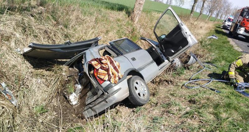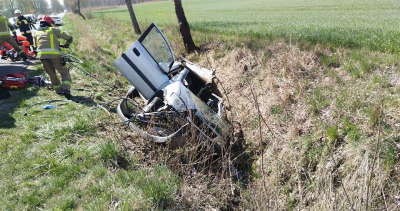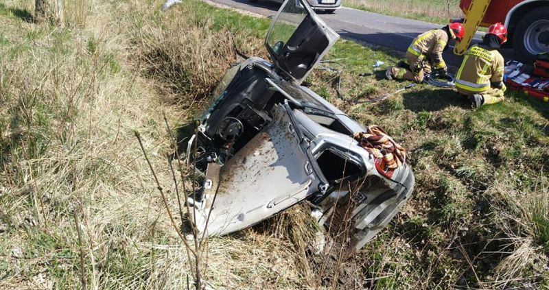 24.04.2022 o godzinie 12:59 Dyżurny Stanowiska Kierowania Komendanta Powiatowego Państwowej Straży Pożarnej w Białogardzie odebrał zgłoszenie o wypadku pojazdu osobowego w pobliżu Stanomina - pojazd dachował i jest osoba poszkodowana. Na miejsce udały się zastępy Straży Pożarnej z Białogardu i Stanomina. Strażacy po dojeździe na miejsce zdarzenia błyskawicznie przystąpili do działań. Zabezpieczono teren i przy pomocy sprzętu hydraulicznego ewakuowano zakleszczonego kierowcę. Strażacy, aby wykonać dostęp do osoby znajdującej się w środku musieli wyciąć dach.