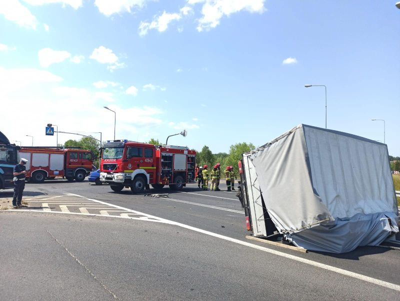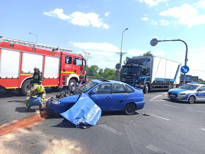 06.06.2023 o godzinie 12:15 Dyżurny Stanowiska Kierowania odebrał zgłoszenie o wypadku komunikacyjnym w okolicach miejscowości Redlino. Auto osobowe zderzyło się z ciężarówką.