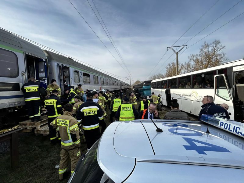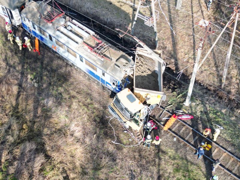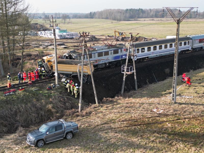 15.02.2023 r. o godzinie 11:33 Dyżurny Stanowiska Kierowania odebrał formatkę z informacją o zderzeniu samochodu ciężarowego z pociągiem osobowym na przejeździe kolejowym w miejscowości Tychowo.