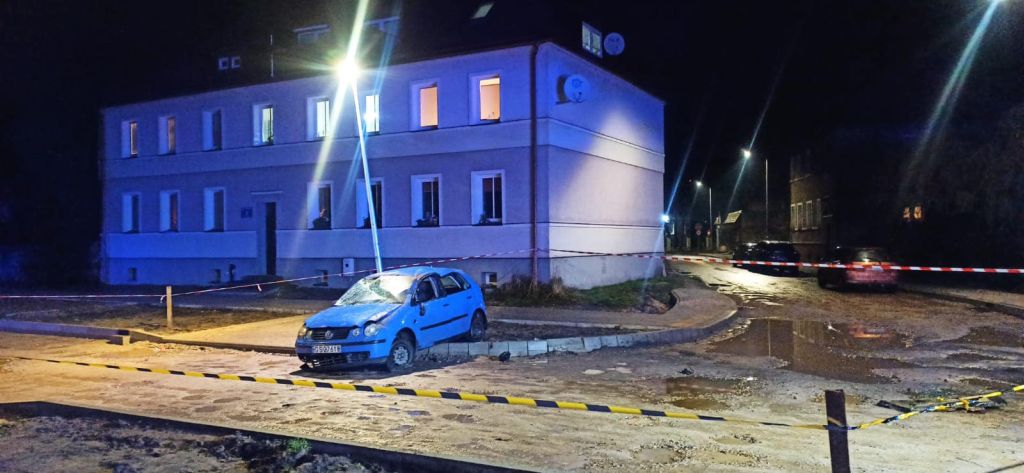 Na miejsce udały się dwa zastępy Straży Pożarnej z JRG Białogard. Strażacy po dojeździe na miejsce, zabezpieczyli teren działań i w wyniku rozpoznania ustalali, że na remontowanym odcinku ulicy Moniuszki, auto osobowe uderzyło w uliczną latarnię. Autem podróżowały dwie osoby. Działania zastępów polegały na udzielenie pomocy medycznej osobie poszkodowanej do czasu przyjazdu ZRM oraz odłączeniu akumulatora w uszkodzonym pojeździe.