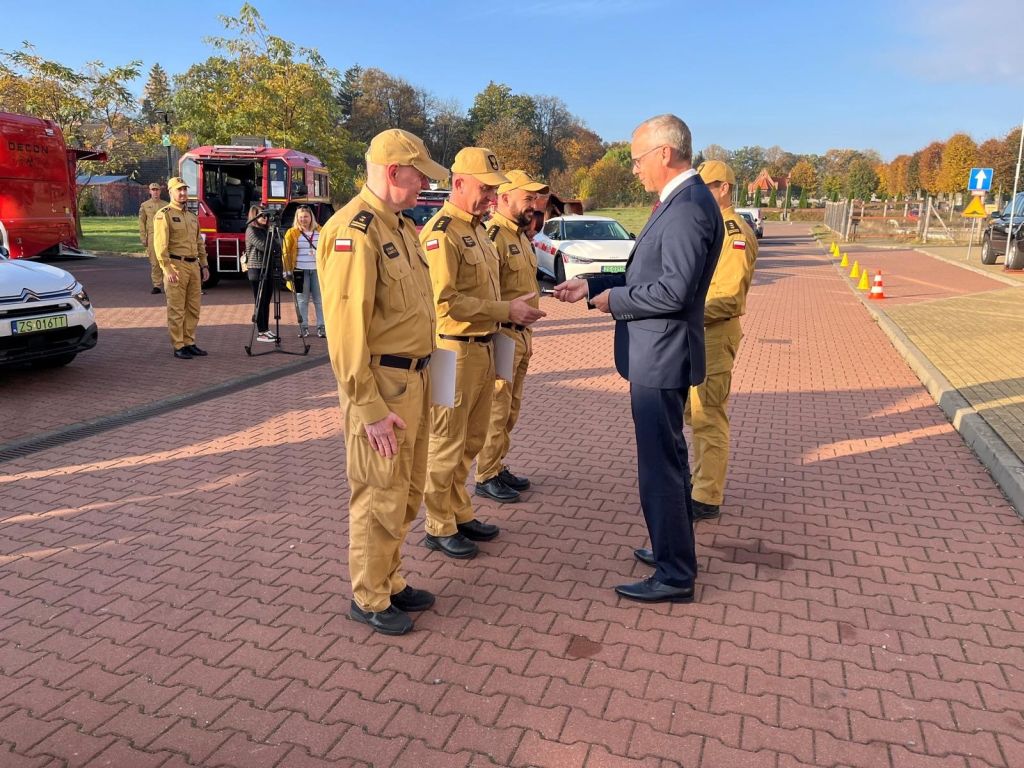 Podczas wydarzenia strażacy Państwowej Straży Pożarnej z jednostek w Białogardzie, Szczecinku i Koszalinie otrzymali nowe pojazdy elektryczne oraz sprzęt do ratownictwa i ochrony środowiska.