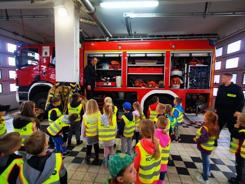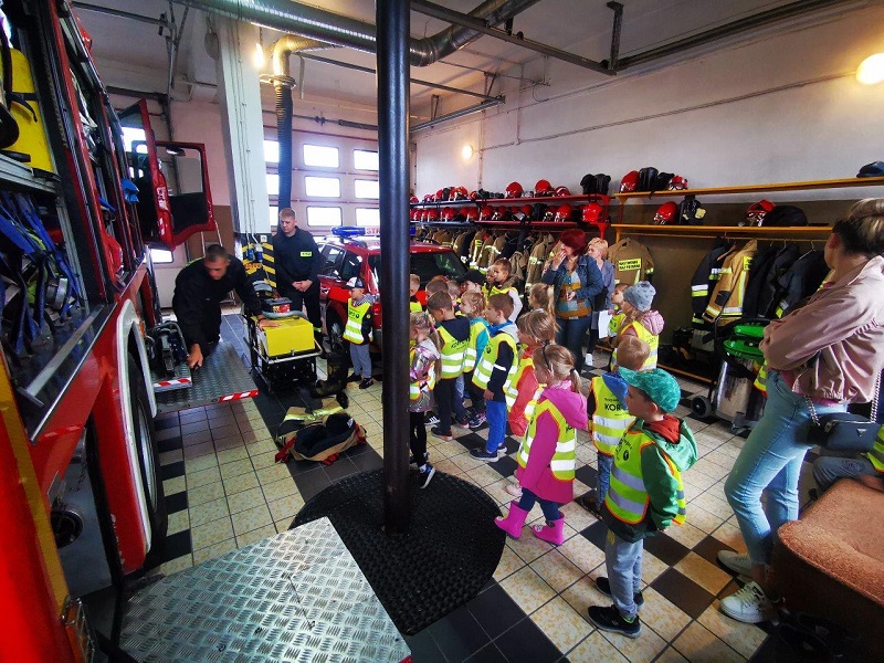16 września 2021 roku w ramach działań prewencji społecznej „Kręci mnie bezpieczeństwo” Komendę Powiatową PSP w Białogardzie odwiedziły dzieci z Przedszkola Miejskiego nr 2 w Białogardzie. Grupa „Kotków” wraz z czterema opiekunkami zapoznała się ze specyfiką pracy strażaków. Odwiedziła Stanowisko Kierowania Komendanta Powiatowego, gdzie dowiedziała się o tym w jakich sytuacjach dzwonić pod numery alarmowe poszczególnych służb oraz jak zgłaszać zdarzenia. W Jednostce Ratowniczo-Gaśniczej grupa zwiedziła pomieszczenia służbowe oraz poznała sposób alarmowania i przygotowania strażaków do wyjazdu. Największą atrakcją cieszyły się jednak strażackie samochody, ich wyposażenie oraz umundurowanie ratownika. Podczas całej wizyty strażacy edukowali przedszkolaków o bezpiecznym zachowaniu się w różnych sytuacjach, a dzieci chętnie i uważnie słuchały strażackich opowieści.