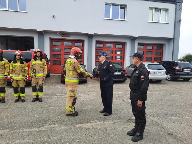 Informację i nagrodę na ręce strażaka przekazał p.o. Komendanta Powiatowego Państwowej Straży Pożarnej w Białogardzie bryg. Jacek Twardoń.