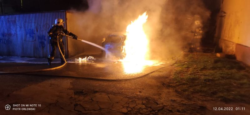 Strażacy po dojeździe na miejsce zdarzenia w wyniku rozpoznania ustalili, że pali się samochód osobowy. Działania zastępu polegały na podaniu prądu piany ciężkiej na palący się pojazd do całkowitego ugaszenia.