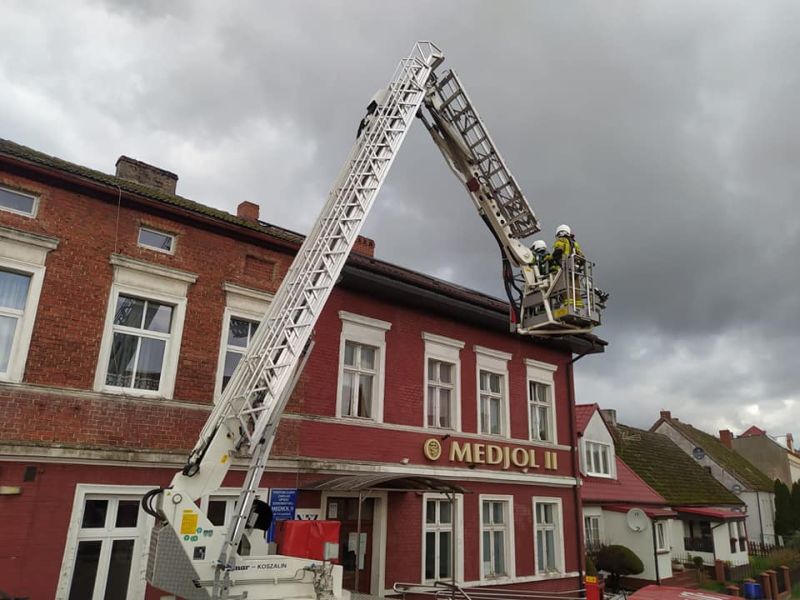 05.11.2022 o godzinie 11:08 Dyżurny Stanowiska Kierowania otrzymał nietypowe zgłoszenie – mały piesek chodzi po dachu budynku. Na miejsce zadysponowane zostały dwa zastępy Straży Pożarnej z Białogardu i Tychowa.