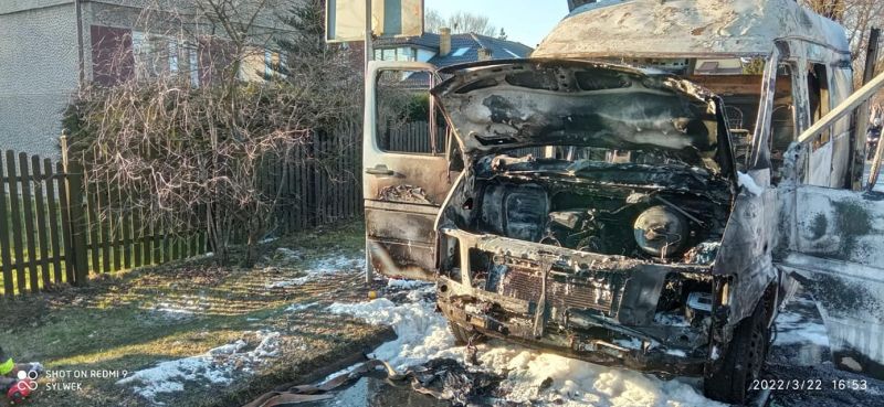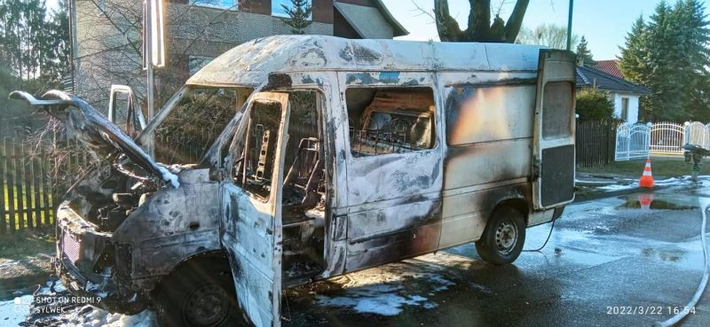 22.03.2022 o godzinie 16:14 Dyżurny Stanowiska Kierowania odebrał formatkę z informacją o pożarze auta dostawczego w Białogardzie na ulicy Stefana Kardynała Wyszyńskiego.