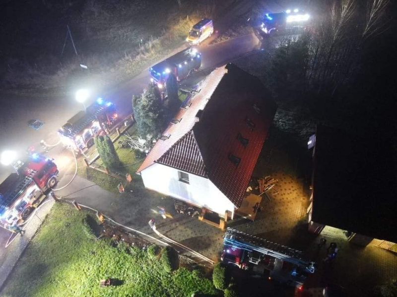 Działania zakończono po 5 godzinach intensywnych prac. Przypuszczalną przyczyną zdarzenia była wada urządzeń ogrzewczych na paliwo stałe, a straty w budynku oszacowano na blisko 500 tys. zł.