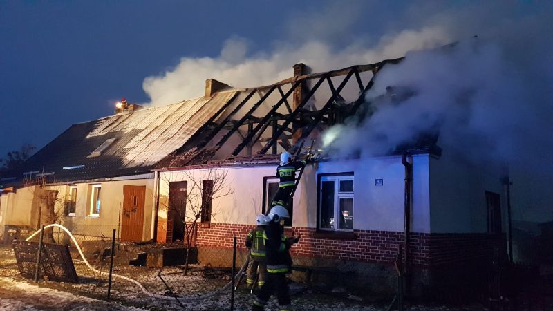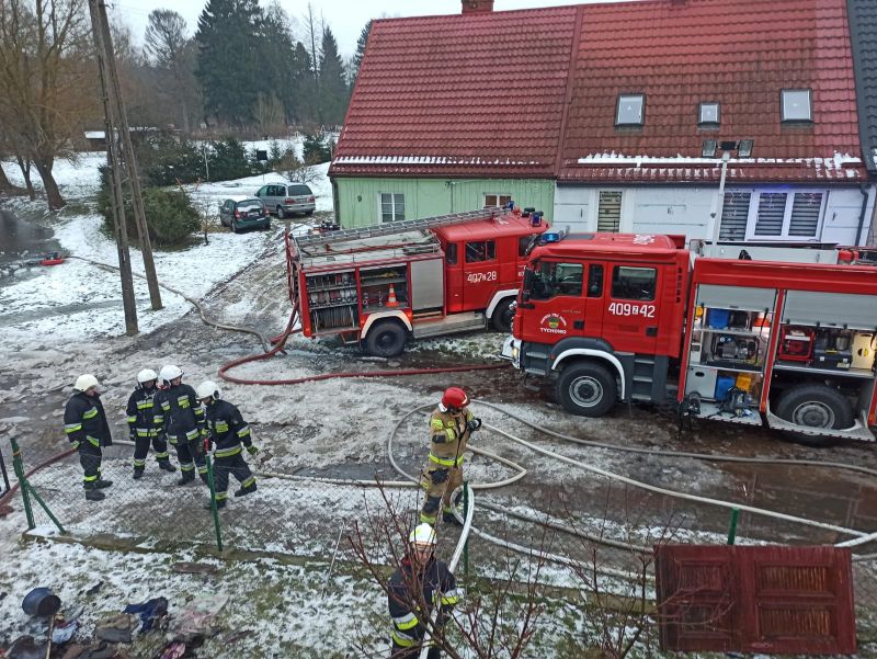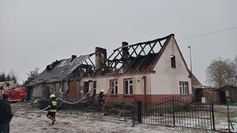 12.01.2022 o godzinie 06:36 Dyżurny Stanowiska Kierowania Komendanta Powiatowego Państwowej Straży Pożarnej w Białogardzie odebrał zgłoszenie o pożarze domu dwurodzinnego w miejscowości Czarnkowo. Formatka zawierała informacje, że pożarem objęty jest dach a mieszkańcy opuścili budynek.