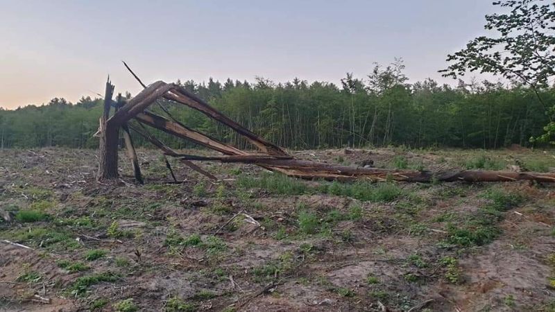 02.07.2022, godzina 21:24: Dyżurny Stanowiska Kierowania Komendanta Powiatowego Państwowej Straży Pożarnej odebrał zgłoszenie o pożarze drzewa trafionego piorunem w okolicy miejscowości Rościno.