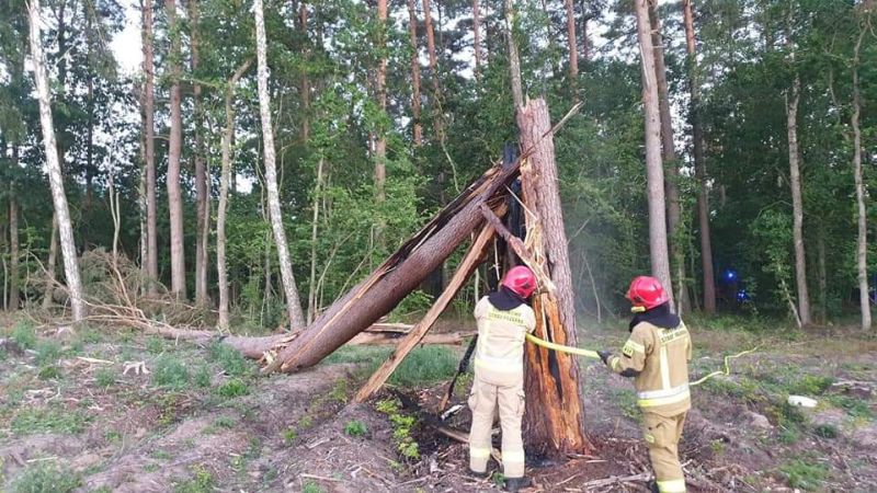 Pożar drzewa po uderzeniu pioruna