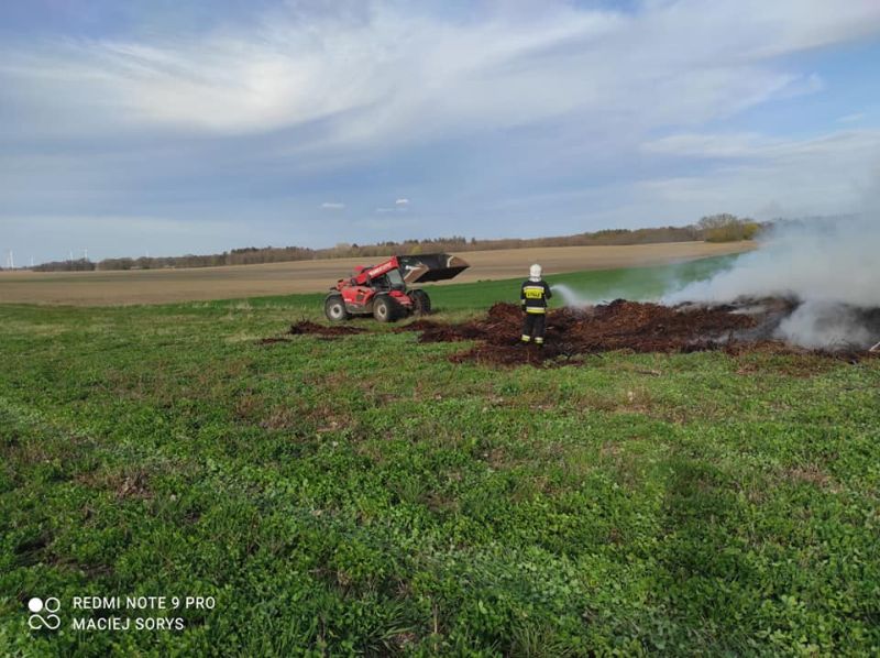 Na miejsce zadysponowane zostały zastępy Straży Pożarnej z Białogardu, Karlina, Domacyna i Daszewa Strażacy po dojeździe na miejsce zdarzenia zabezpieczyli teren i przystąpili do gaszenia palących się zrębek i innych materiałów organicznych. Działania utrudniał wiatr i rodzaj palącego się materiału.