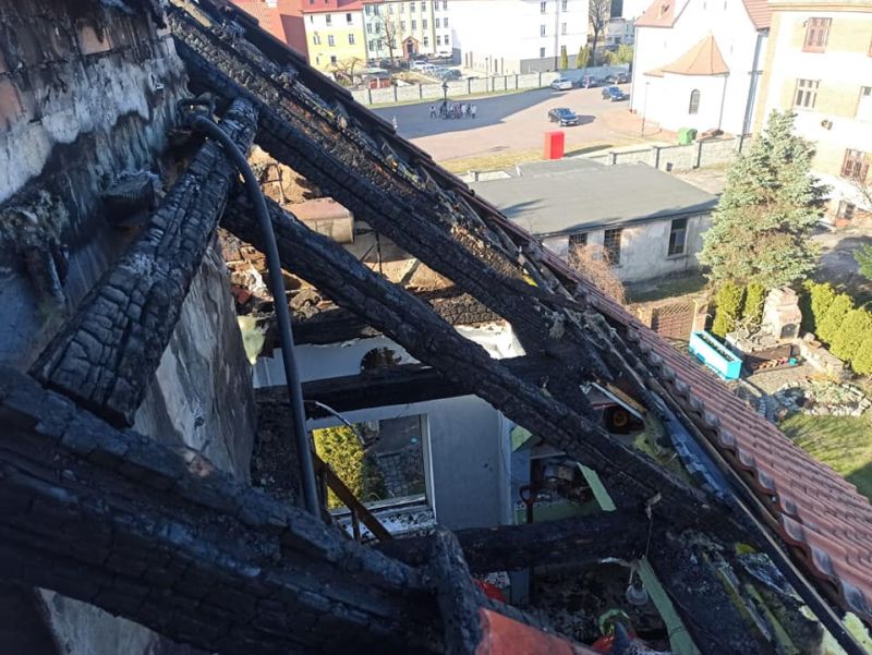 Przypuszczalna przyczyna zdarzenia została nieustalona a straty w budynku określono na 150 tys. zł.