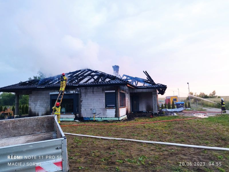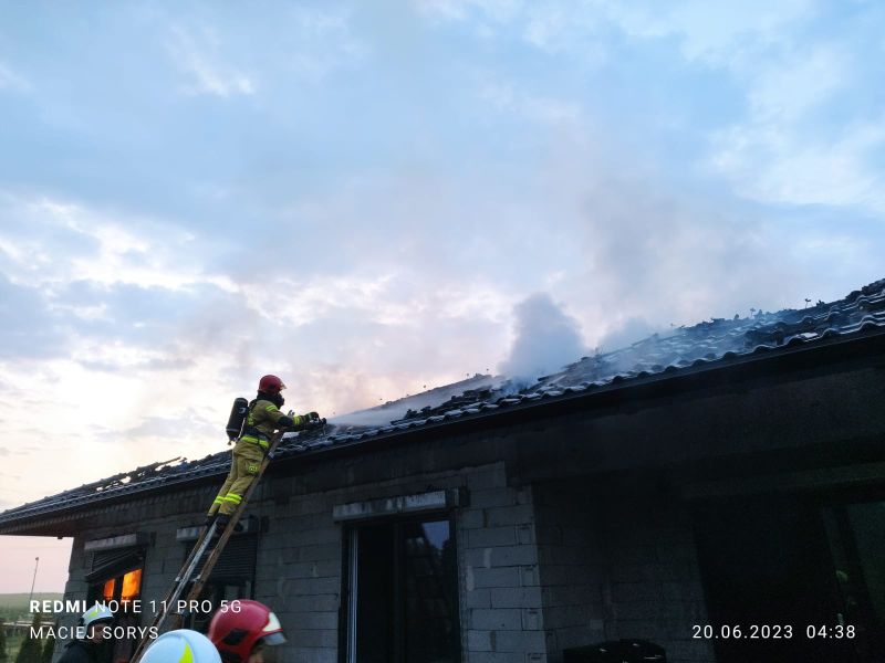 20.06.2023 o godzinie 3:45 Dyżurny Stanowiska Kierowania odebrał zgłoszenie o pożarze poddasza w budynku jednorodzinnym w miejscowości Kowańcz.