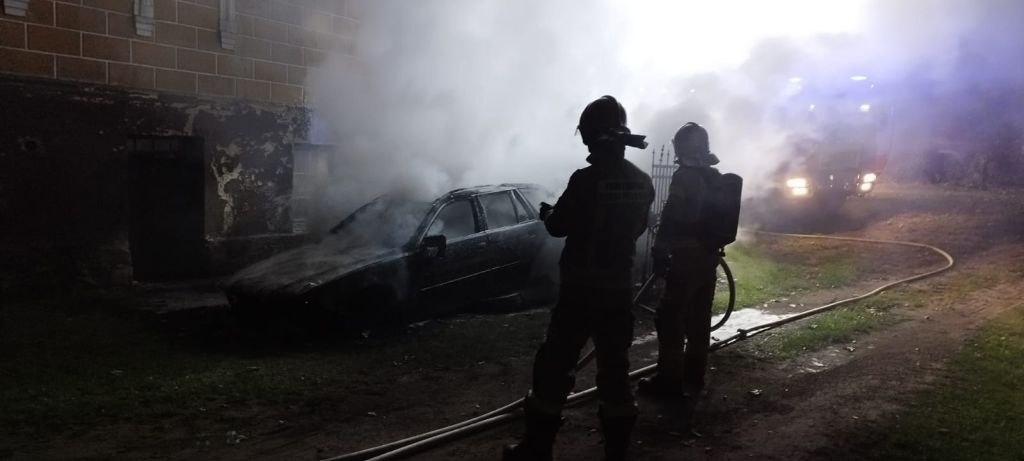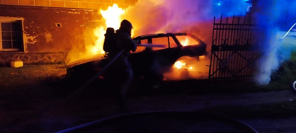03.10.2023 o godzinie 00:55 Dyżurny Stanowiska Kierowania Komendanta Powiatowego PSP w Białogardzie przyjął zgłoszenie o pożarze pojazdu osobowego w miejscowości Rogowo.